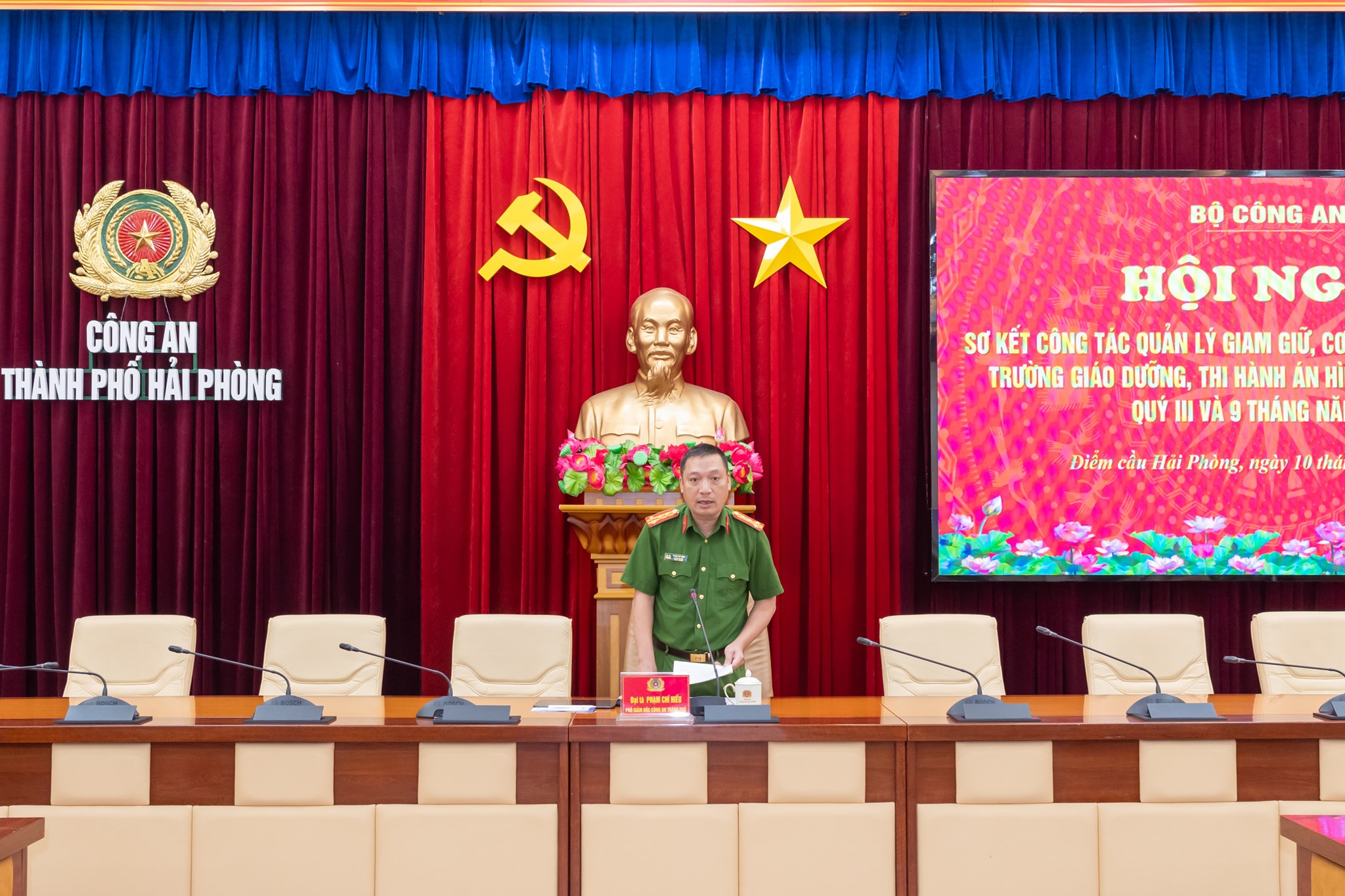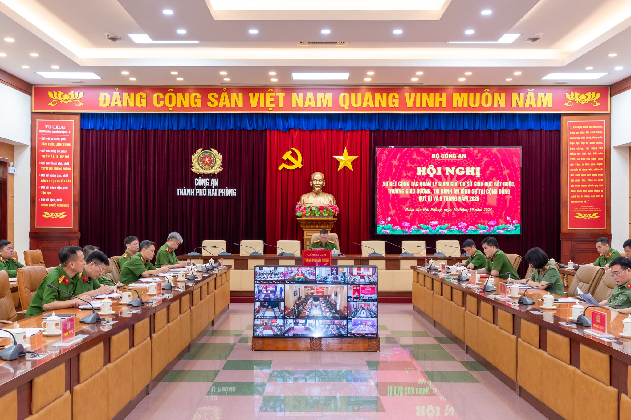 Sáng 10/10/2025, tại Hà Nội, Thượng tướng Lê Văn Tuyến, Thứ trưởng Bộ Công an chủ trì Hội nghị giao ban công tác giam giữ, cơ sở giáo dục bắt buộc, trường giáo dưỡng và thi hành án hình sự tại cộng đồng Quý III/2025 và 9 tháng đầu năm 2025. Dự Hội nghị có lãnh đạo Cục Cảnh sát quản lý trại giam, cơ sở giáo dục bắt buộc, trường giáo dưỡng (TG, CSGDBB, TGD); Cục Cảnh sát quản lý tạm giữ, tạm giam (TGTG) và thi hành án hình sự (THAHS) tại cộng đồng; một số đơn vị chức năng thuộc Bộ. Hội nghị được tổ chức trực tuyến đến Công an các địa phương. Được sự quan tâm, chỉ đạo sâu sát của Đảng uỷ Công an Trung ương, lãnh đạo Bộ Công an, sự phối hợp, tạo điều kiện của Công an các đơn vị, địa phương, công tác giam giữ, CSGDBB, TGD và THAHS tại cộng đồng trong Quý III/2025 và 9 tháng đầu năm đã đạt được kết quả quan trọng, toàn diện.