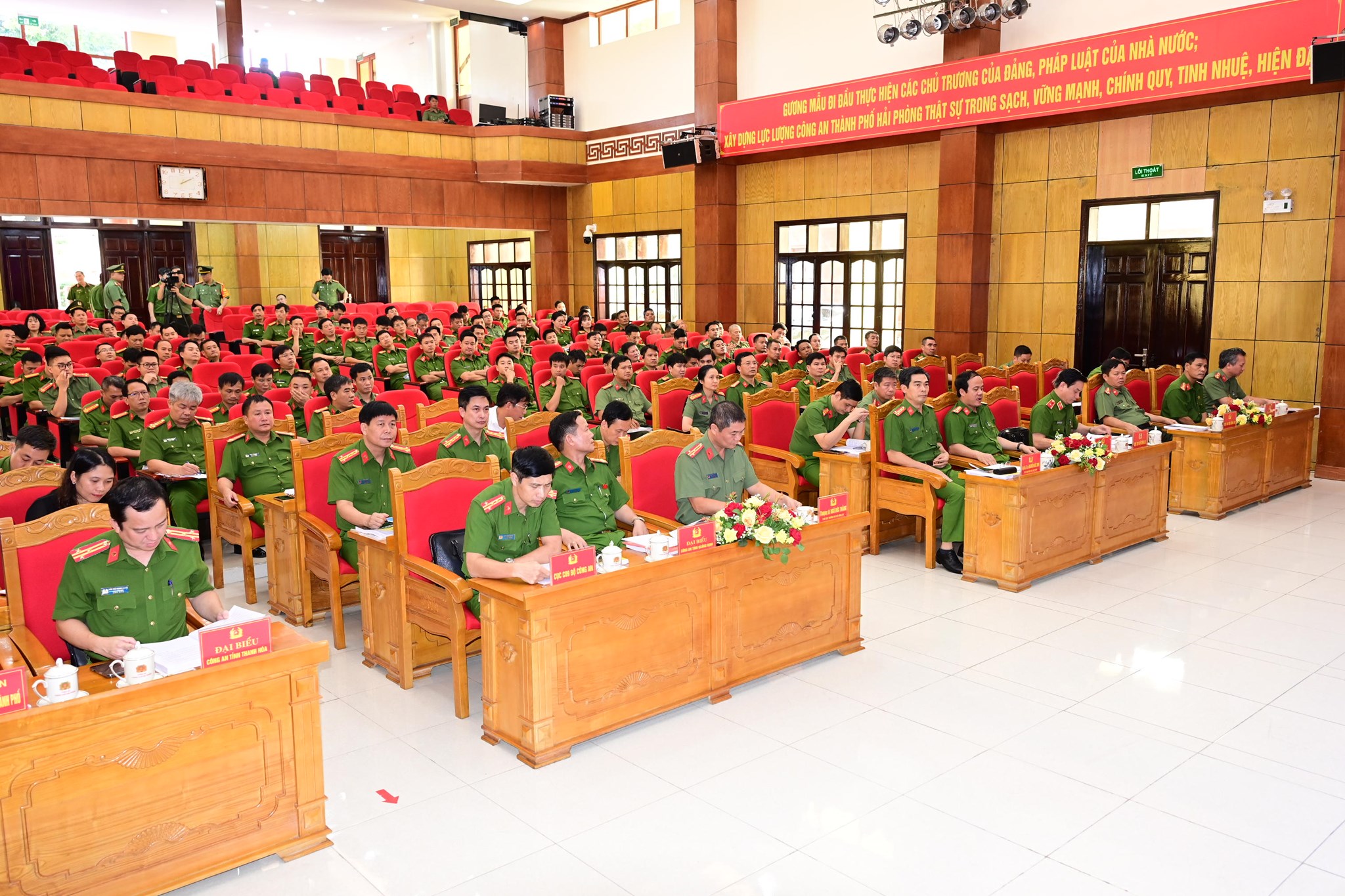 Đại tá Nguyễn Đức Thìn, Phó giám đốc CATP Hải Phòng và Thượng tá Ngô Đức Thắng, Phó cục trưởng Cục Pháp chế và cải cách hành chính, tư pháp Bộ Công an với các đại biểu tham dự Hội thảo