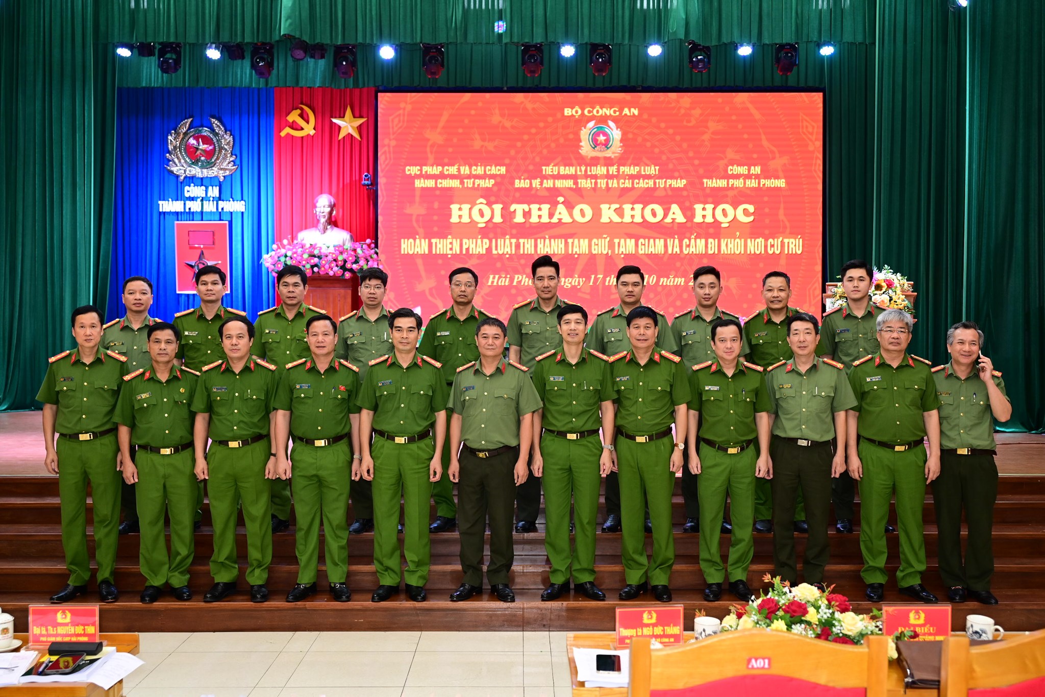 Chiều 17/10/2025, CATP Hải Phòng phối hợp với Cục Pháp chế và cải cách hành chính, tư pháp và Tiểu ban lý luận về pháp luật bảo vệ ANTT và cải cách tư pháp (Bộ Công an) tổ chức Hội thảo khoa học “Hoàn thiện pháp luật thi hành tạm giữ, tạm giam và cấm đi khỏi nơi cư trú”. Đại tá Nguyễn Đức Thìn, Phó giám đốc CATP Hải Phòng và Thượng tá Ngô Đức Thắng, Phó cục trưởng Cục Pháp chế và cải cách hành chính, tư pháp (Bộ Công an) đồng chủ trì hội thảo. Cùng dự có đại diện lãnh đạo một số Cục nghiệp vụ, nhà trường CAND; đại diện lãnh đạo Công an các tỉnh, thành phố: Hà Nội, Quảng Ninh, Cao Bằng, Lai Châu, Thanh Hóa, Nghệ An, Hà Tĩnh, Bắc Ninh, Tuyên Quang, Phú Thọ, Hưng Yên, Thái Nguyên; đại diện Viện KSND thành phố Hải Phòng, TAND thành phố Hải Phòng; Bộ CHQS thành phố Hải Phòng, Sở Tư pháp thành phố Hải Phòng...