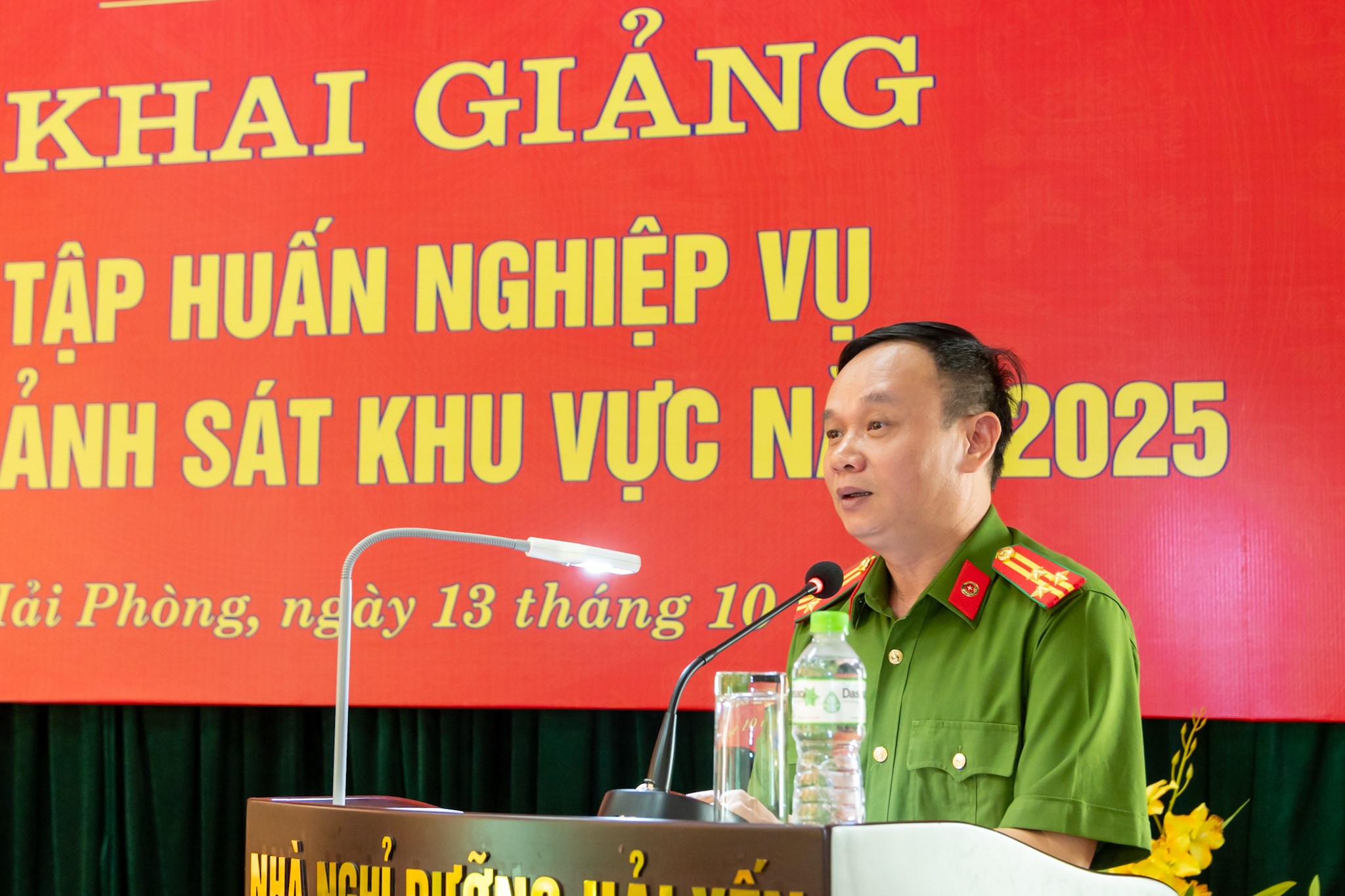 Sáng 13/10/2025, tại Hải Phòng, Cục Cảnh sát QLHC về TTXH, Bộ Công an, tổ chức Khai giảng lớp tập huấn nghiệp vụ công tác Cảnh sát khu vực (CSKV) cho lãnh đạo, chỉ huy lực lượng Cảnh sát QLHC về TTXH. Dự hội nghị có Đại tá Phùng Xuân Tiến - Cục Phó Cục Cảnh sát QLHC về TTXH; Đại tá Nguyễn Thị Thảo - Trưởng Phòng 4, Cục Cảnh sát QLHC về TTXH. Phía CATP, Đại tá Phạm Chí Hiếu - Phó Giám đốc CATP cùng đại diện lãnh đạo một số phòng nghiệp vụ chức năng CATP; tập thể lãnh đạo Phòng Cảnh sát QLHC về TTXH; đại diện Chỉ huy Đội 1, tập thể Chỉ huy Đội 4 thuộc phòng tham dự lễ khai giảng.