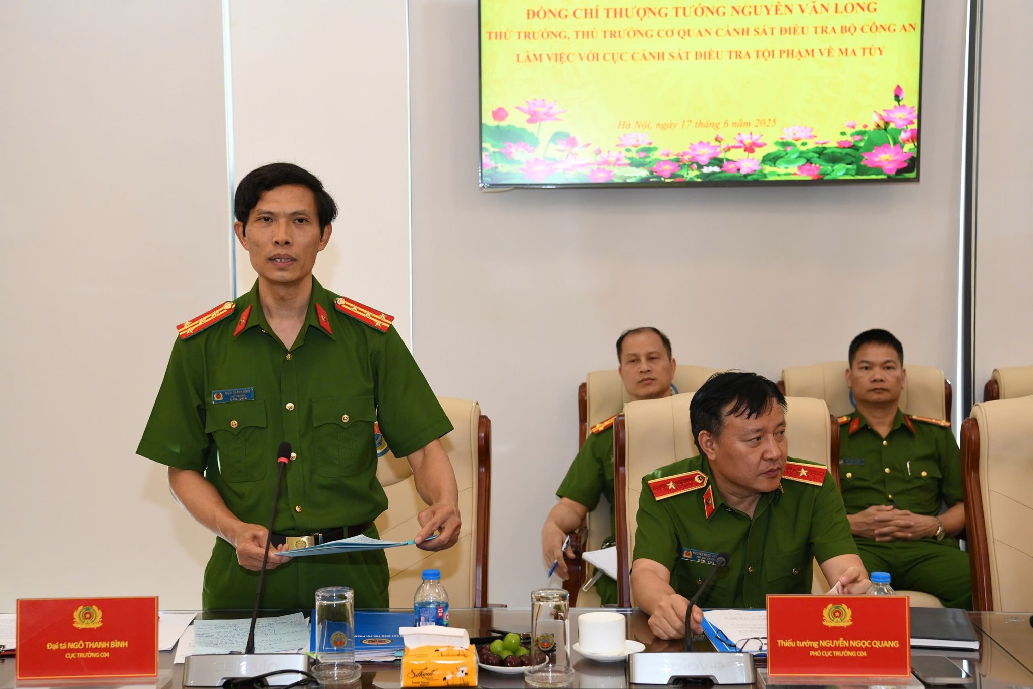 Đại tá Ngô Thanh Bình, Cục trưởng Cục Cảnh sát ĐTTP về ma túy phát biểu tại cuộc làm việc