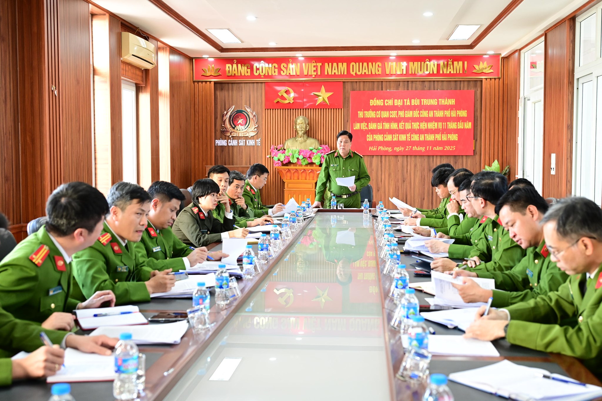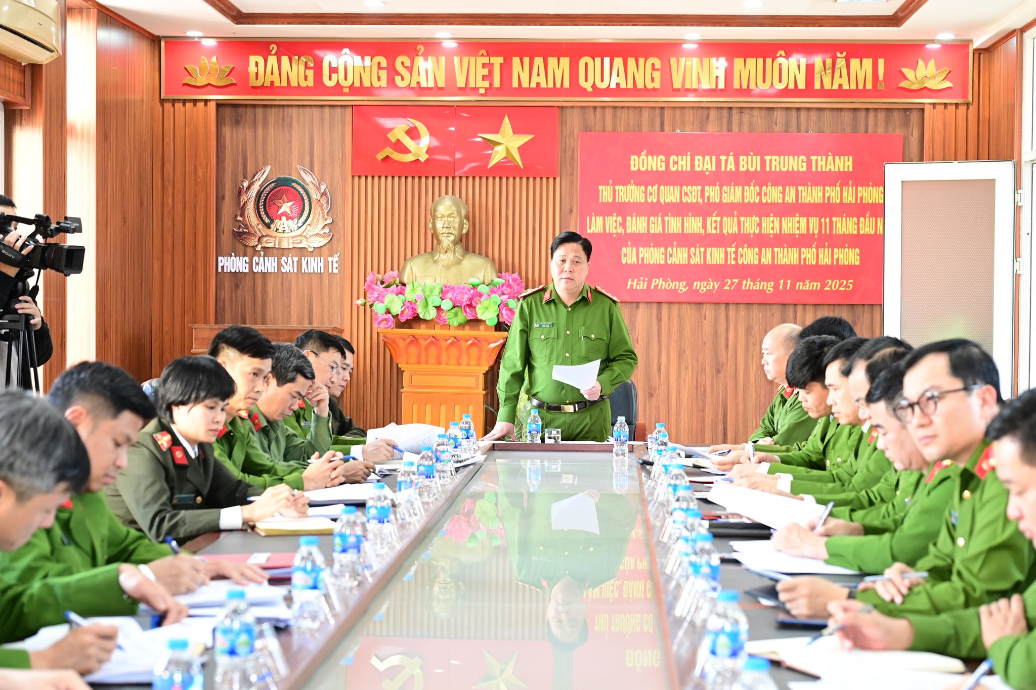 Chiều ngày 27/11/2025, Đại tá Bùi Trung Thành, Thủ trưởng Cơ quan Cảnh sát điều tra, Phó Giám đốc CATP làm việc với Phòng Cảnh sát điều tra tội phạm về tham nhũng, kinh tế, buôn lậu và môi trường (TN, KT, BL và MT) nhằm đánh giá tình hình, kết quả thực hiện nhiệm vụ 11 tháng đầu năm 2025, đưa ra phương hướng, nhiệm vụ tháng 12/2025; đồng thời đề xuất giải pháp thực hiện cao điểm tấn công, trấn áp tội phạm Tết Bính Ngọ 2026.