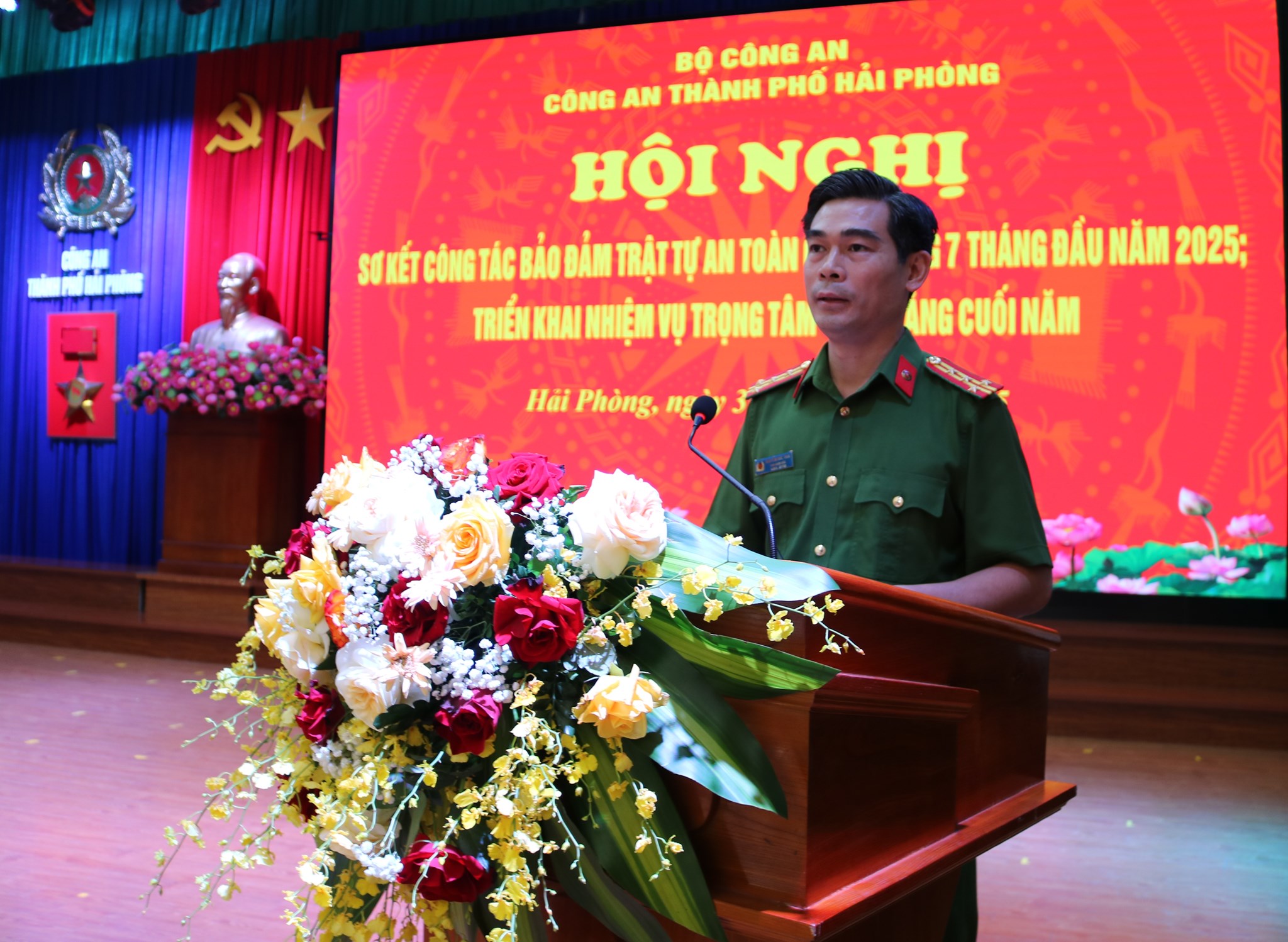 Thượng tá Trần Anh Ngọc,Trưởng Phòng CSGT báo cáo kết quả thực hiện nhiệm vụ 7 tháng đầu năm 2025