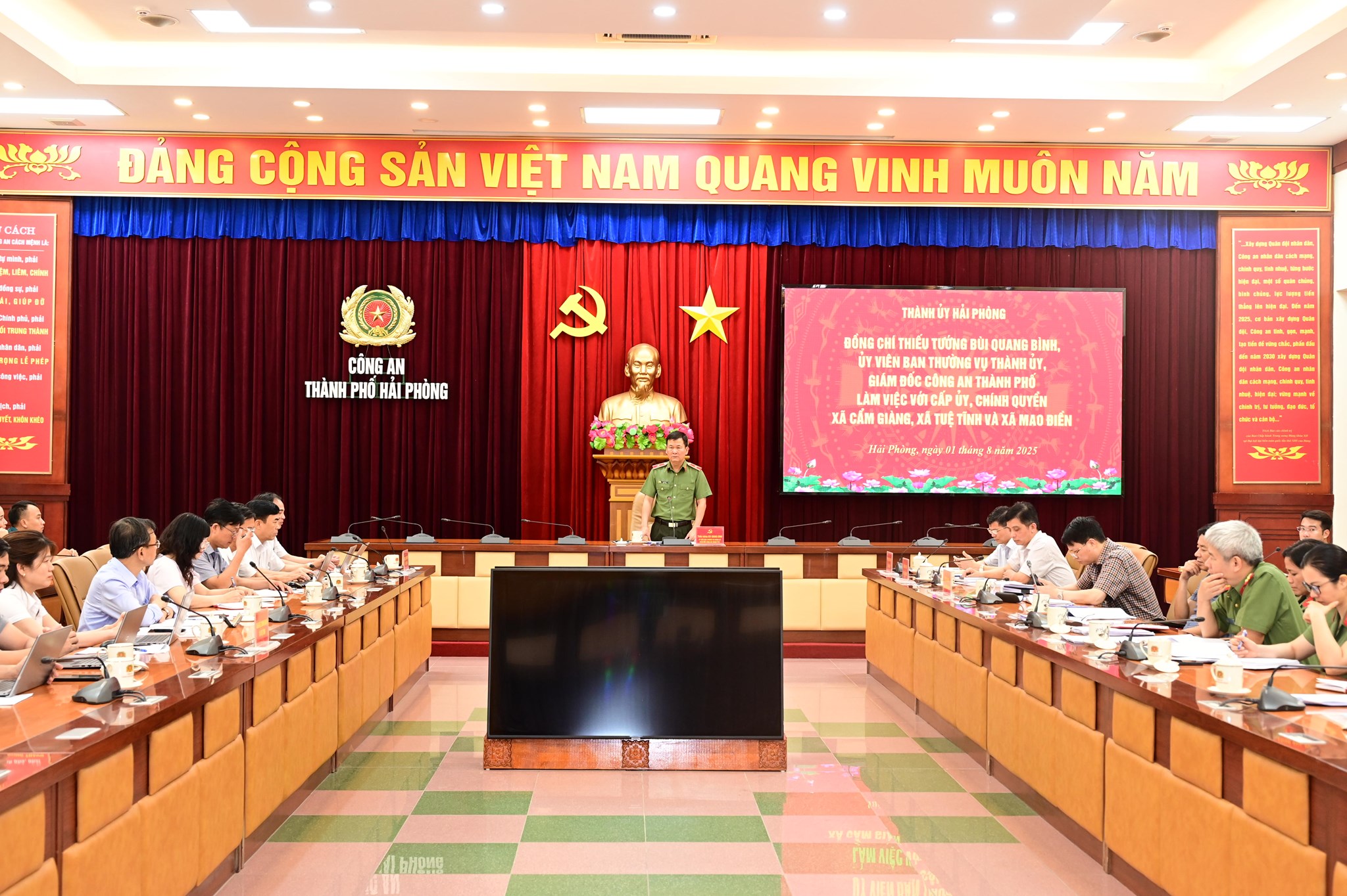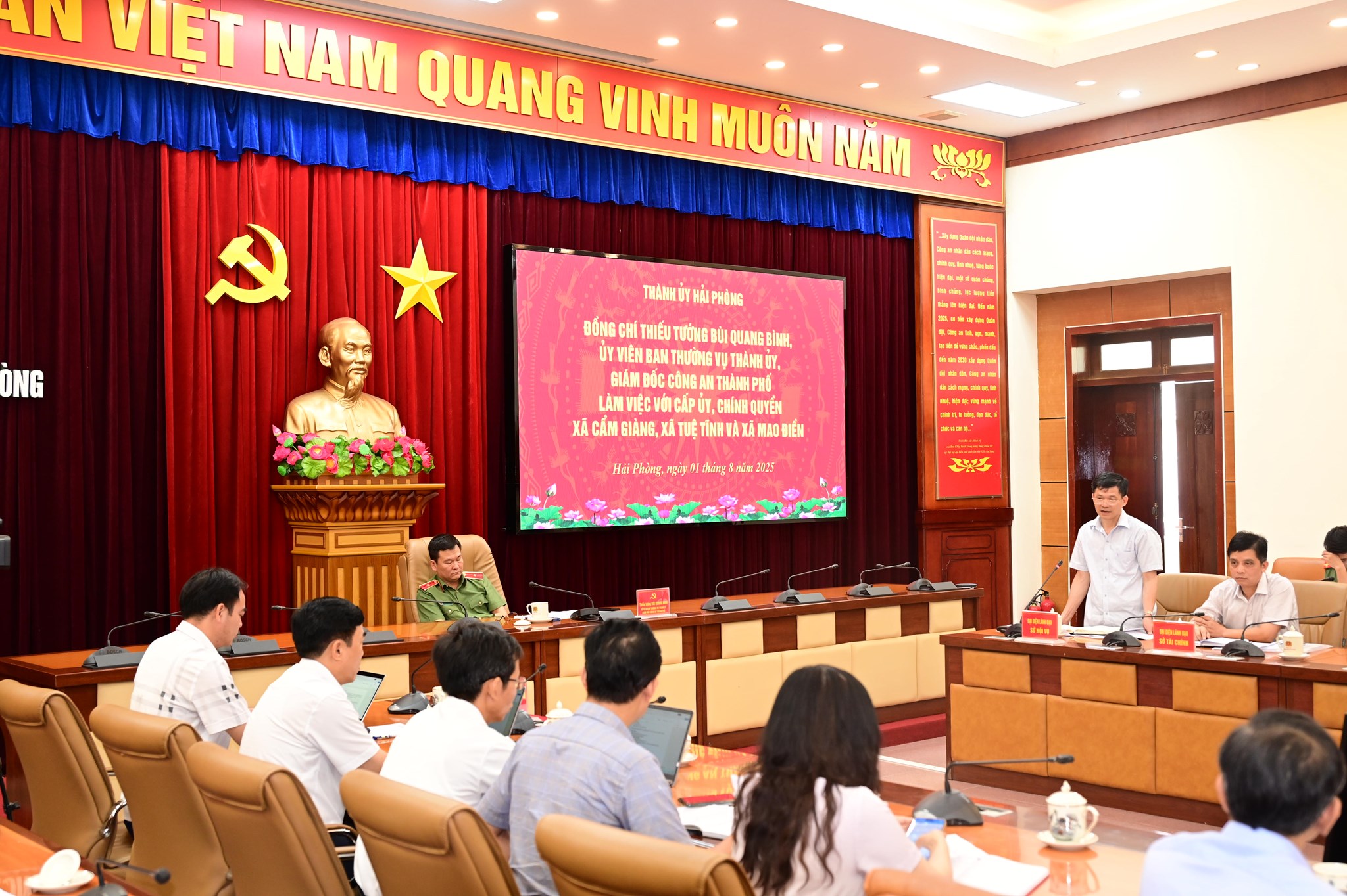 Tại cuộc làm việc, Thiếu tướng Bùi Quang Bình, Ủy viên BTV Thành ủy, Giám đốc CATP nhấn mạnh, việc chuyển mạnh, tiến tới chuyển toàn diện sang áp dụng công nghệ để phục vụ phát triển kinh tế - xã hội địa phương và phục vụ nhân dân, doanh nghiệp là xu hướng tất yếu, lãnh đạo các xã Cẩm Giàng, Tuệ Tĩnh, Mao Điền tiếp tục rà soát về cơ sở vật chất, trụ sở, xã nào đã bảo đảm thì tiếp tục phát huy, xã nào còn khó khăn thì nghiên cứu bố trí quỹ đất, lập dự án xây dựng trụ sở mới, ưu tiên các công trình có mục đích trực tiếp phục vụ nhân dân. Bên cạnh đó, các xã Cẩm Giàng, Tuệ Tĩnh, Mao Điền có phương án đề xuất tuyển dụng công chức, viên chức phù hợp để phục vụ công việc. Về tiến độ chuẩn bị Đại hội Đảng bộ các xã, Thiếu tướng Bùi Quang Bình, Ủy viên BTV Thành ủy, Gi ám đốc CATP đề nghị BTV Đảng ủy các xã Cẩm Giàng, Tuệ Tĩnh, Mao Điền cần chuẩn bị tốt nội dung các văn kiện đại hội, trong văn kiện phải thể hiện và khẳng định được những nhiệm vụ trọng tâm, mang tính đặc thù của các địa phương để tập trung triển khai, thực hiện trong nhiệm kỳ 2025 – 2030…