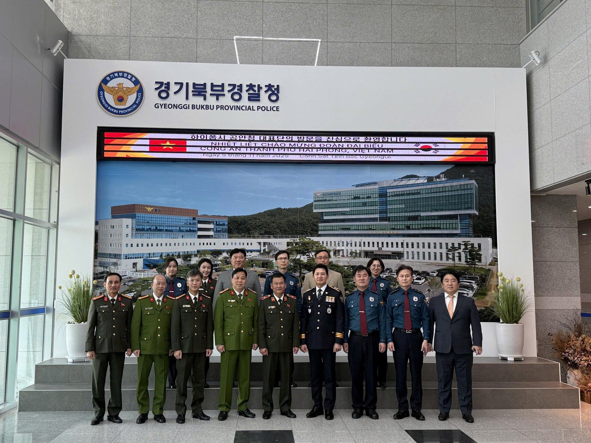 Tại buổi hội đàm chiều ngày 05/11/2025 tại trụ sở Cảnh sát tỉnh Bắc Gyeonggi, Giám đốc Công an thành phố Hải Phòng và Giám đốc Cảnh sát tỉnh Bắc Gyeonggi đã trao đổi thông tin, chia sẻ kinh nghiệm và công tác phối hợp trong đấu tranh phòng, chống tội phạm, nhất là tội phạm ma tuý, tội phạm xuyên quốc gia, tội phạm mạng, sử dụng công nghệ cao, bảo đảm quyền lợi, an toàn của công dân hai nước...qua đó duy trì, thúc đẩy mối quan hệ hợp tác giữa các lực lượng chức năng hai địa phương và hai quốc gia.