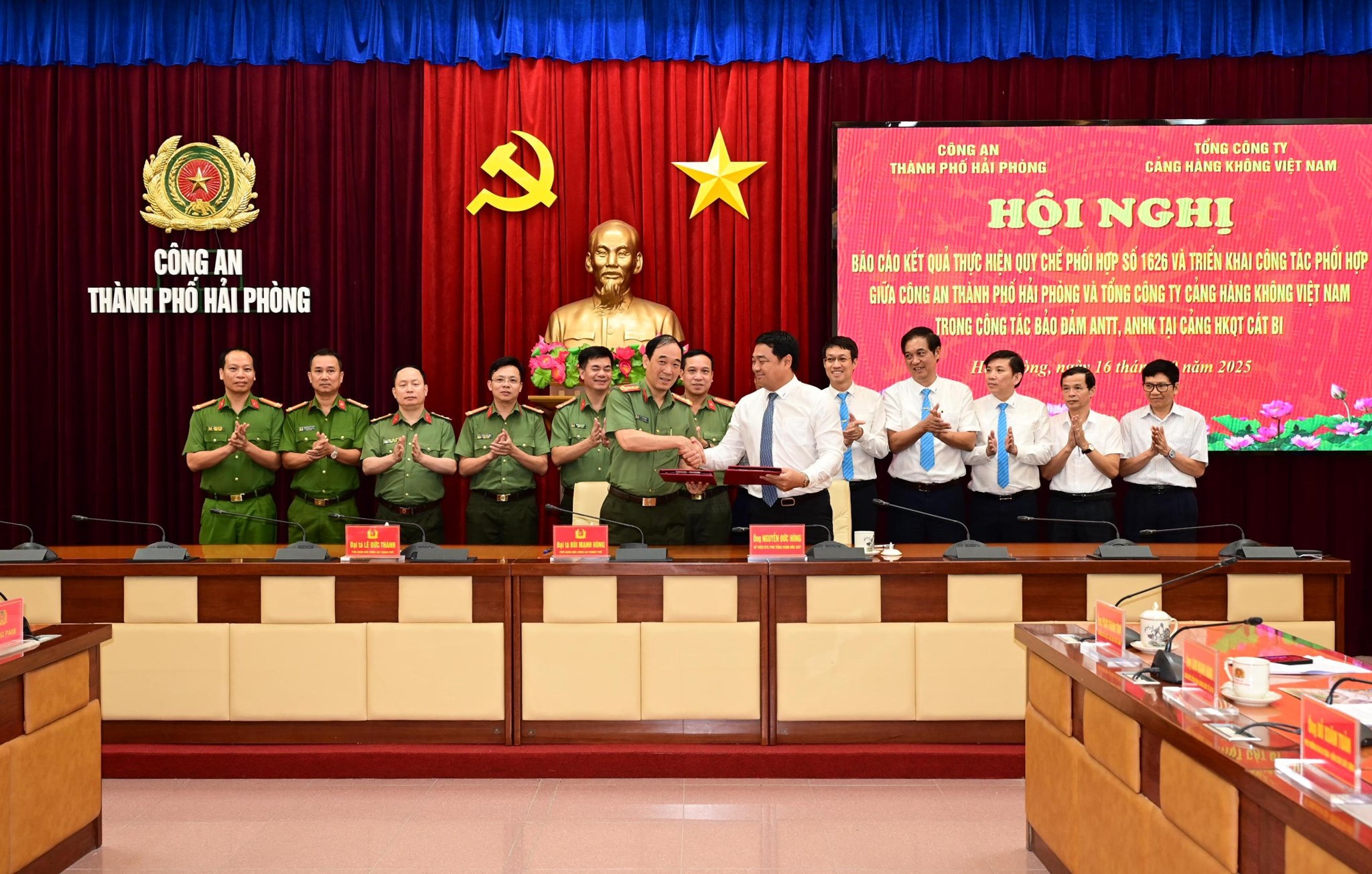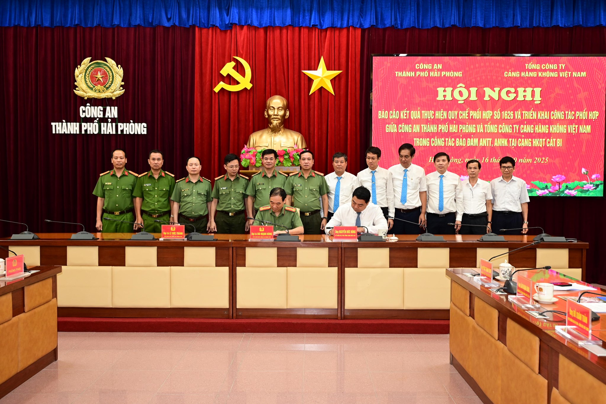 Từ ngày 1/3/2025,Công an thành phố chính thức tiếp nhận nhiệm bảo đảm ANHK từ Cảng vụ hàng không miền Bắc và Cảng HKQT Cát Bi. Để phù hợp với tình hình mới, tại Hội nghị, Công an thành phố Hải Phòng và Tổng Công ty hàng không Việt Nam tiếp tục ban hành, ký kết quy chế phối hợp bảo đảm ANTT, ANHK tại Cảng HKQTCát Bi với 3 chương, 16 điều, có hiệu lực kể từ ngày 16/10/2025 với phần nội dung không chỉ kế thừa, phát huy những kết quả đã đạt đượcmà còn được điều chỉnh, bổ sung và thay thế để phù hợp, chặt chẽ hơn; qua đó bảo đảm tuyệt đối an ninh, an toàn hàng không, góp phần phục vụ đắc lực cho sự phát triển kinh tế - xã hội và hội nhập quốc tế của thành phố.