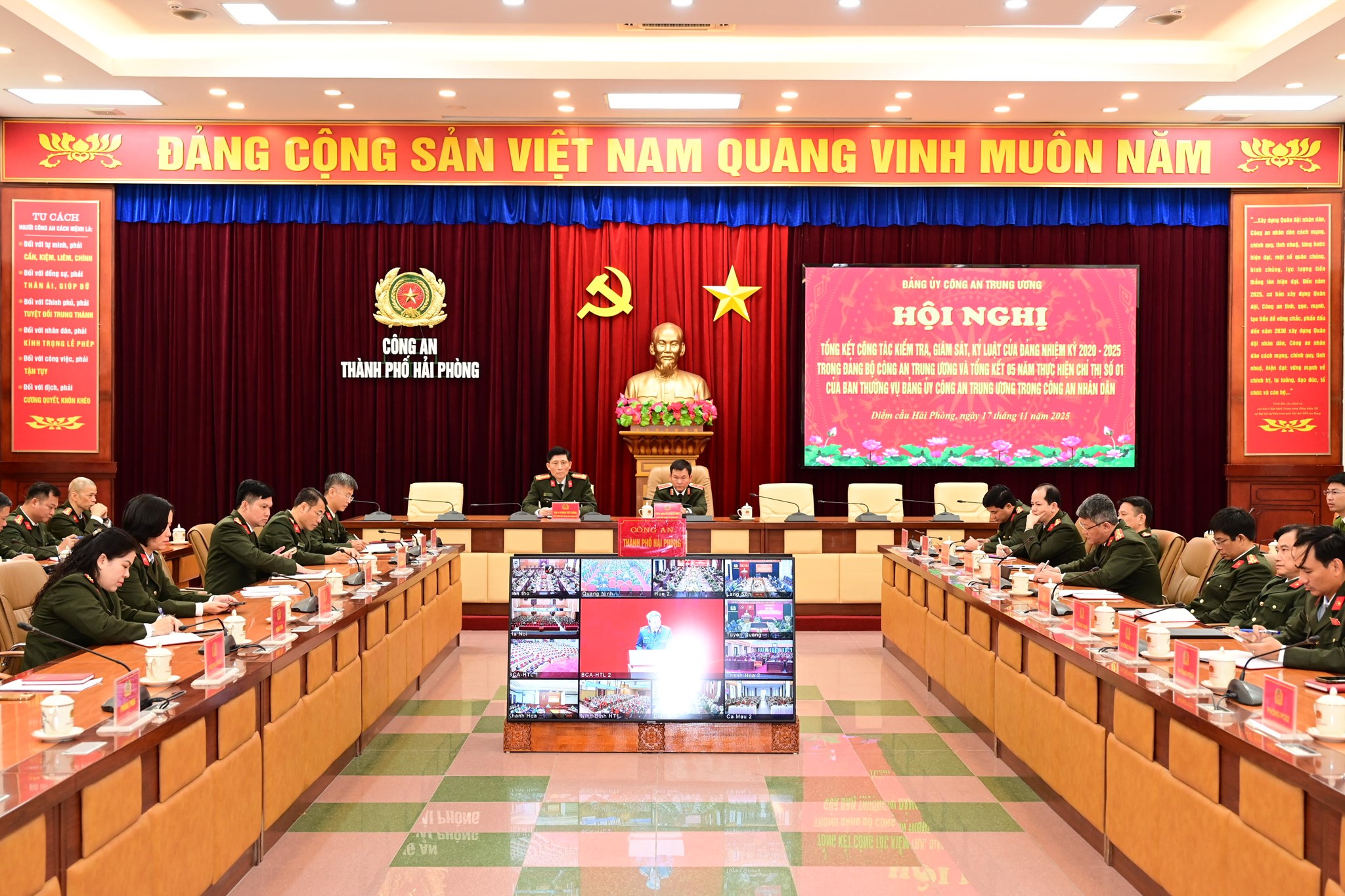 Phát biểu kết luận Hội nghị, thay mặt Đảng uỷ Công an Trung ương, Bộ Công an, Bộ trưởng Lương Tam Quang ghi nhận, đánh giá cao và nhiệt liệt biểu dương những thành tích, kết quả trong công tác kiểm tra, giám sát, kỷ luật của Đảng nhiệm kỳ 2020-2025; trân trọng cảm ơn sự quan tâm phối hợp, hướng dẫn của Uỷ ban Kiểm tra Trung ương, sự phối hợp của Uỷ ban kiểm tra Quân uỷ Trung ương và các ban, bộ, ngành liên quan, mong muốn tiếp tục nhận được sự phối hợp, tạo điều kiện của các đồng chí trong công tác kiểm tra, giám sát, kỷ luật Đảng, công tác bảo đảm an ninh, trật tự thời gian tới.