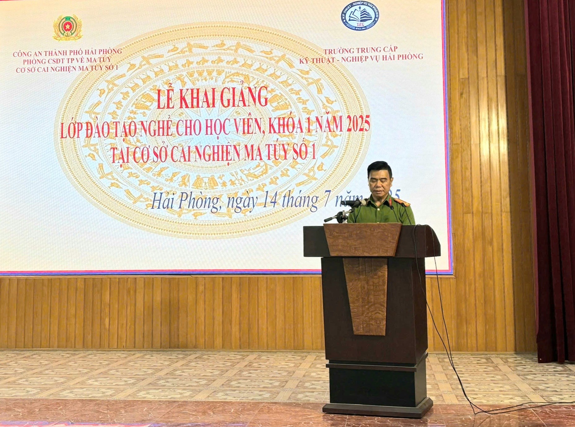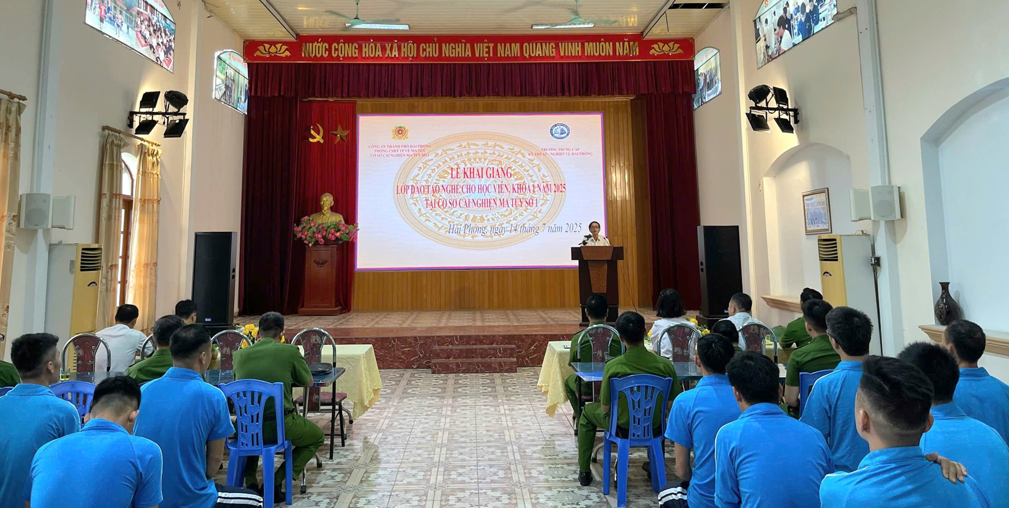 Thực hiện chỉ đạo của Đại tá Lê Trung Sơn, Phó Giám đốc Công an thành phố về việc tổ chức mở lớp dạy nghề cho học viên tại Cơ sở cai nghiện ma túy số 1; căn cứ hợp đồng đào tạo giữa Công an thành phố Hải Phòng và Trường Trung cấp Kỹ thuật - nghiệp vụ Hải Phòng, vào sáng 14/7, Cơ sở cai nghiện ma túy số 1 đã phối hợp tổ chức lớp học nghề cho học viên tại cơ sở. Tới dự có Thượng tá Nguyễn Hồng Nam, Trưởng Cơ sở cai nghiện ma túy số 1 và Thượng tá Bùi Tùng Mậu - Phó trưởng phòng Cảnh sát ĐTTP về ma túy phụ trách cơ sở...