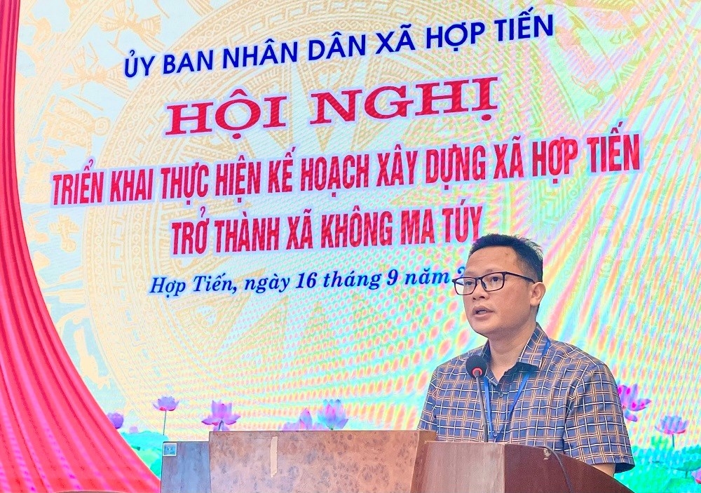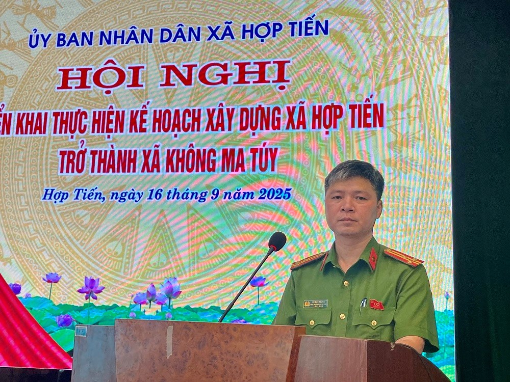 Tại hội nghị, Thượng tá Vũ Đức Trung - Trưởng Công an xã Hợp Tiến đã trình bày Kế hoạch và Nghị quyết xây dựng xã Hợp Tiến không ma túy. Theo đó, việc triển khai kế hoạch nhằm mục đích huy động sức mạnh tổng hợp của cấp ủy, chính quyền địa phương, hệ thống chính trị và các tầng lớp Nhân dân tham gia phòng, chống ma túy; tăng cường công tác phối hợp thường xuyên, chặt chẽ và đồng bộ giữa các ban, ngành, đoàn thể, địa phương trong tổ chức thực hiện công tác phòng, chống và kiểm soát ma túy.