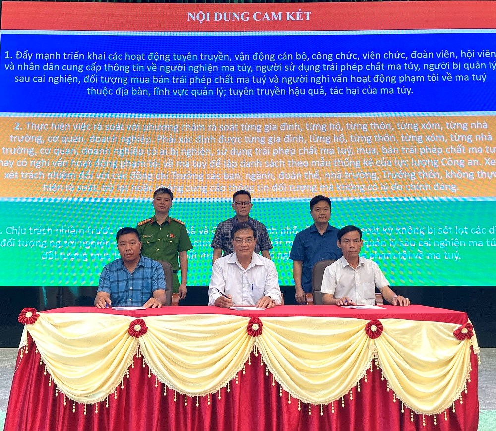 Đại diện các ban, ngành, đoàn thể, nhà trường và các thôn ký cam kết quyết tâm xây dựng xã Hợp Tiến trở thành xã không ma túy