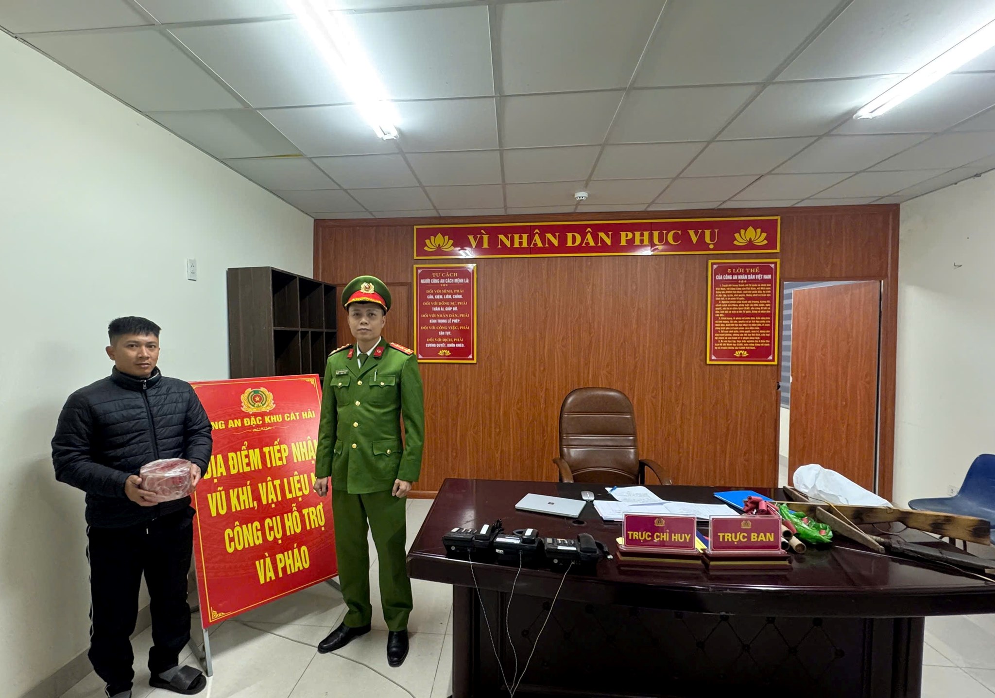 Trong dịp đầu năm 2026, Công an đặc khu Cát Hải vận động nhân dân giao nộp 4,3kg pháo, 01 nỏ và 01 dao mèo.