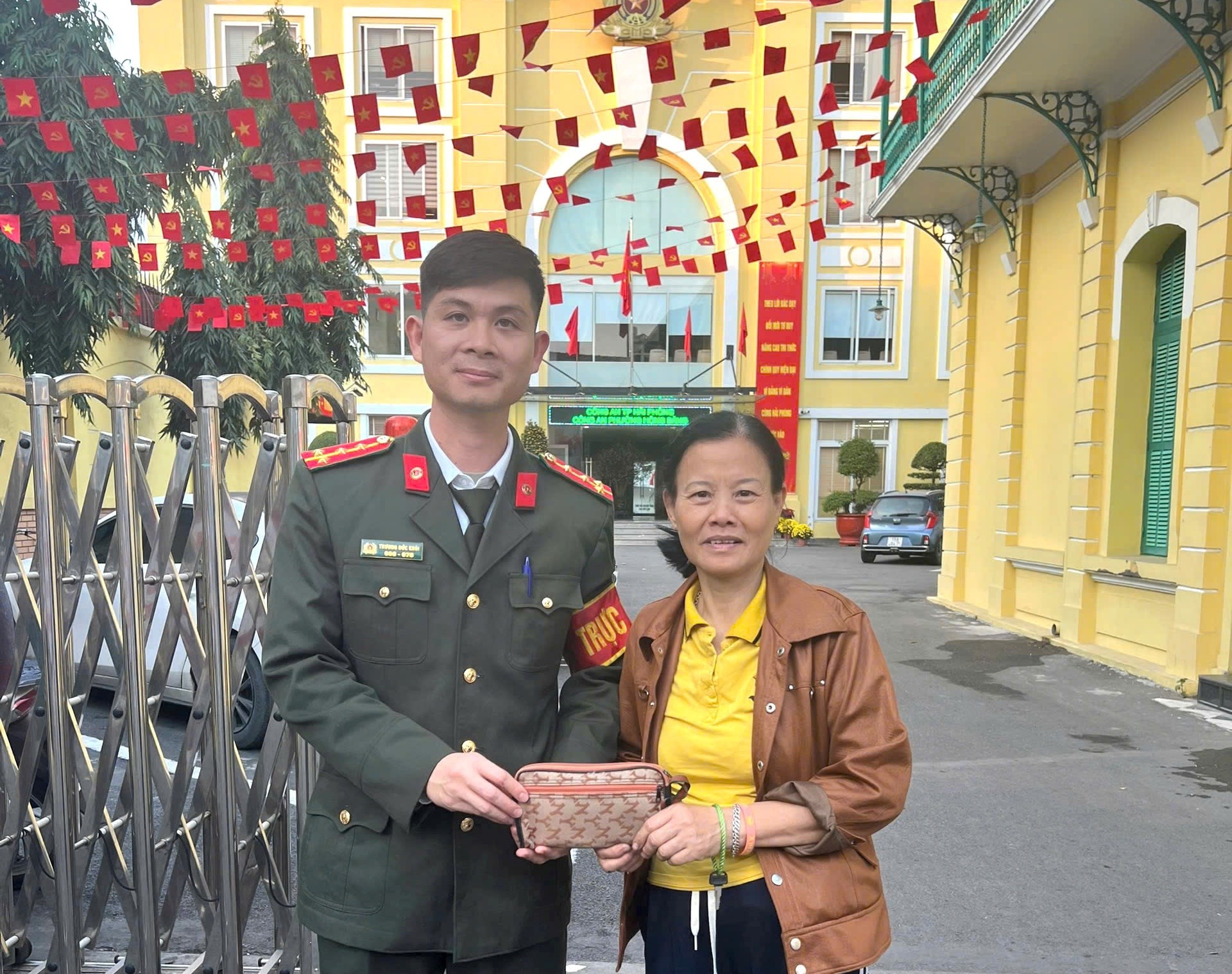 Ngay sau đó, chị Vang đã đến Công an phường Hồng Bàng trình báo sự việc và nhờ cơ quan Công an hỗ trợ trả lại tài sản cho người đánh rơi. Công an phường Hồng Bàng nhanh chóng xác minh, xác định chủ nhân của chiếc ví là bà Vũ Thị Chính, sinh năm 1963, trú tại Chợ Đôn, An Biên, Hải Phòng.