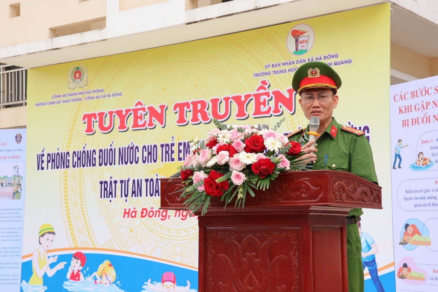 Phát biểu tại buổi tuyên truyền, đồng chí Hoàng Văn Đại, Chủ tịch UBND xã Hà Đông nhấn mạnh tầm quan trọng của việc phối hợp giữa gia đình, nhà trường và các lực lượng chức năng trong công tác bảo vệ trẻ em. Đồng chí đề nghị các em học sinh nâng cao ý thức tự giác, chấp hành nghiêm pháp luật và tích cực rèn luyện kỹ năng sống để phòng tránh các tai nạn, tệ nạn đáng tiếc, đặc biệt trong dịp hè sắp tới.