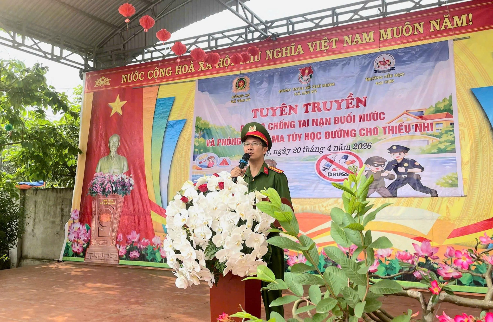 Sáng ngày 20/4/2026, tại Trường Tiểu học Đại Hợp, Công an xã Tân Kỳ phối hợp với Đoàn Thanh niên xã tổ chức buổi tuyên truyền phòng, chống tai nạn đuối nước và ma túy học đường. Tham dự chương trình có 30 cán bộ, giáo viên cùng 581 học sinh nhà trường.