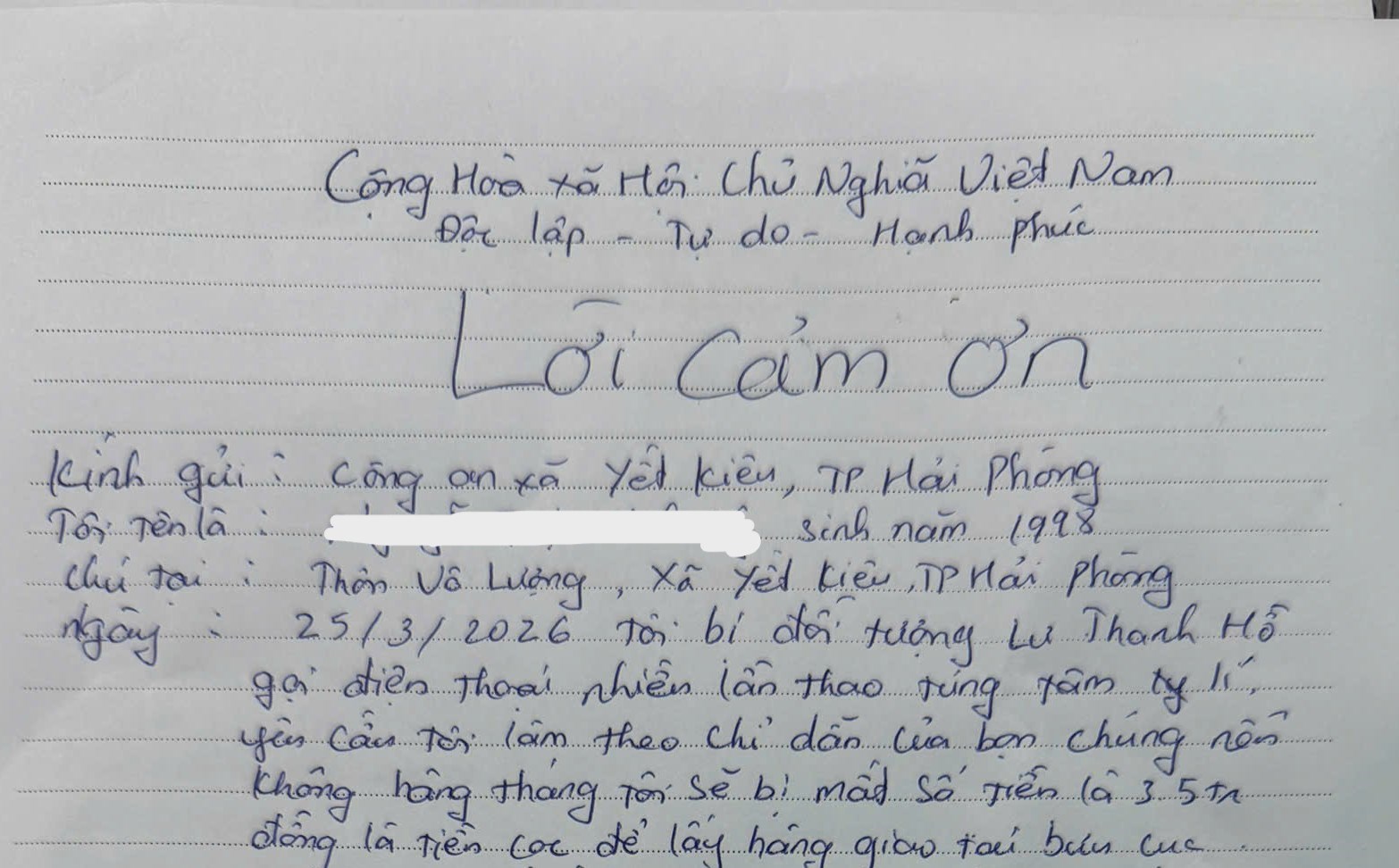 Ngày 25/03/2026, chị N.T.M.L (sinh năm 1998, trú tại thôn Vô Lượng, xã Yết Kiêu, TP Hải Phòng) nhận được cuộc gọi từ một đối tượng tự xưng là nhân viên giao hàng của Vietnam Post, yêu cầu chị chuyển 5.000 đồng vào tài khoản chỉ định để "lấy hàng từ bưu cục". Ngay sau khi chị L chuyển tiền, đối tượng tiếp tục gửi một đường link lạ, yêu cầu chị truy cập để "hủy tài khoản shipper nội bộ" nhằm tránh bị trừ 3,5 triệu đồng mỗi tháng.