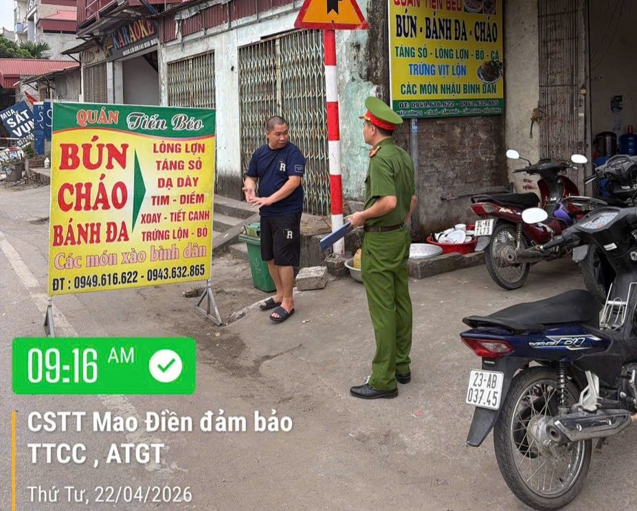 Thực hiện các kế hoạch của UBND thành phố về xây dựng tuyến Quốc lộ 5 trở thành tuyến đường an toàn giao thông, Công an xã Mao Điền đã chủ động tham mưu cho cấp ủy, chính quyền địa phương triển khai giải tỏa hành lang an toàn giao thông trên toàn tuyến. Qua thời gian ra quân, tình hình trật tự hành lang giao thông trên địa bàn đã có nhiều chuyển biến tích cực. Tuy nhiên, thực tế vẫn còn một số hộ kinh doanh ven đường lấn chiếm lòng, lề đường để buôn bán, đặt biển quảng cáo, kê bàn ghế… Những hành vi này không chỉ vi phạm quy định mà còn tiềm ẩn nguy cơ mất an toàn giao thông, cản trở tầm nhìn của người điều khiển phương tiện, làm gia tăng nguy cơ tai nạn.
