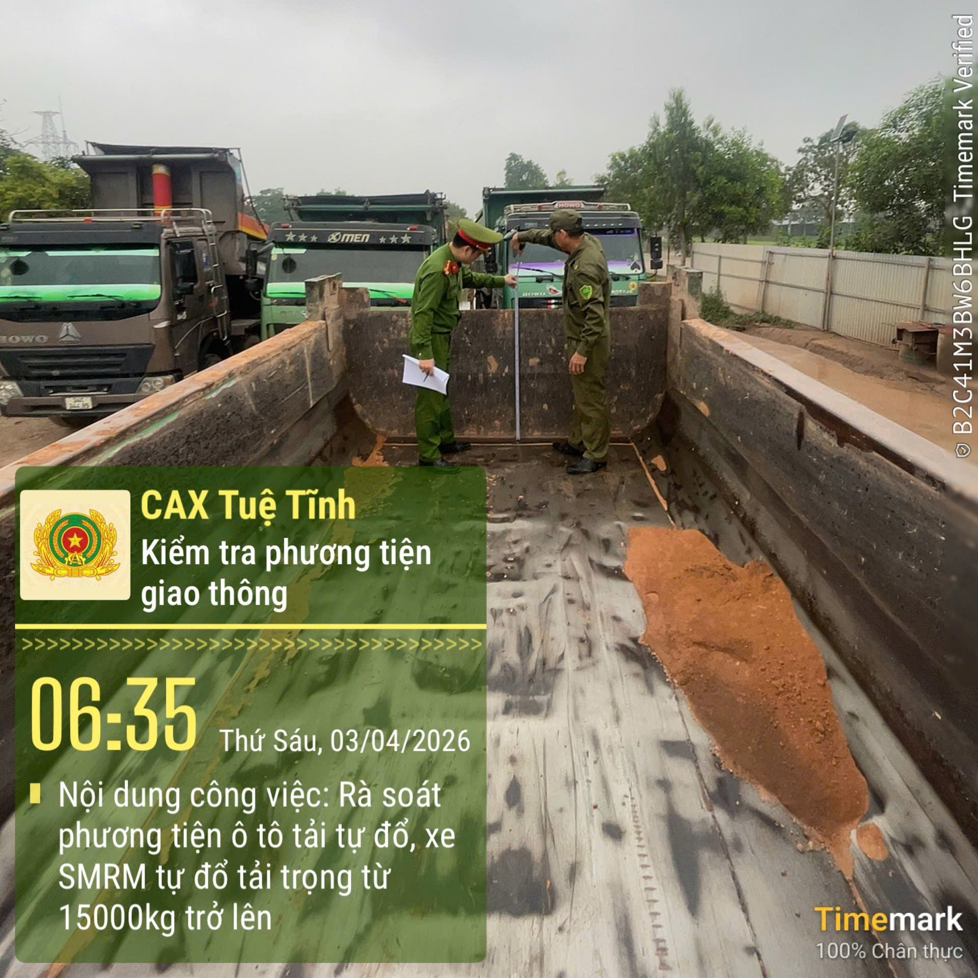 Từ ngày 03/4/2026, thực hiện chỉ đạo của lãnh đạo Công an thành phố, Công an xã Tuệ Tĩnh triển khai đợt tổng rà soát phương tiện ô tô tải tự đổ, xe sơ mi rơ moóc tự đổ có tải trọng từ 15.000kg trở lên trên địa bàn. Hoạt động có sự tham gia phối hợp của các ban, ngành đoàn thể xã, các chủ doanh nghiệp, chủ phương tiện và đội ngũ lái xe đang hoạt động tại địa phương.
