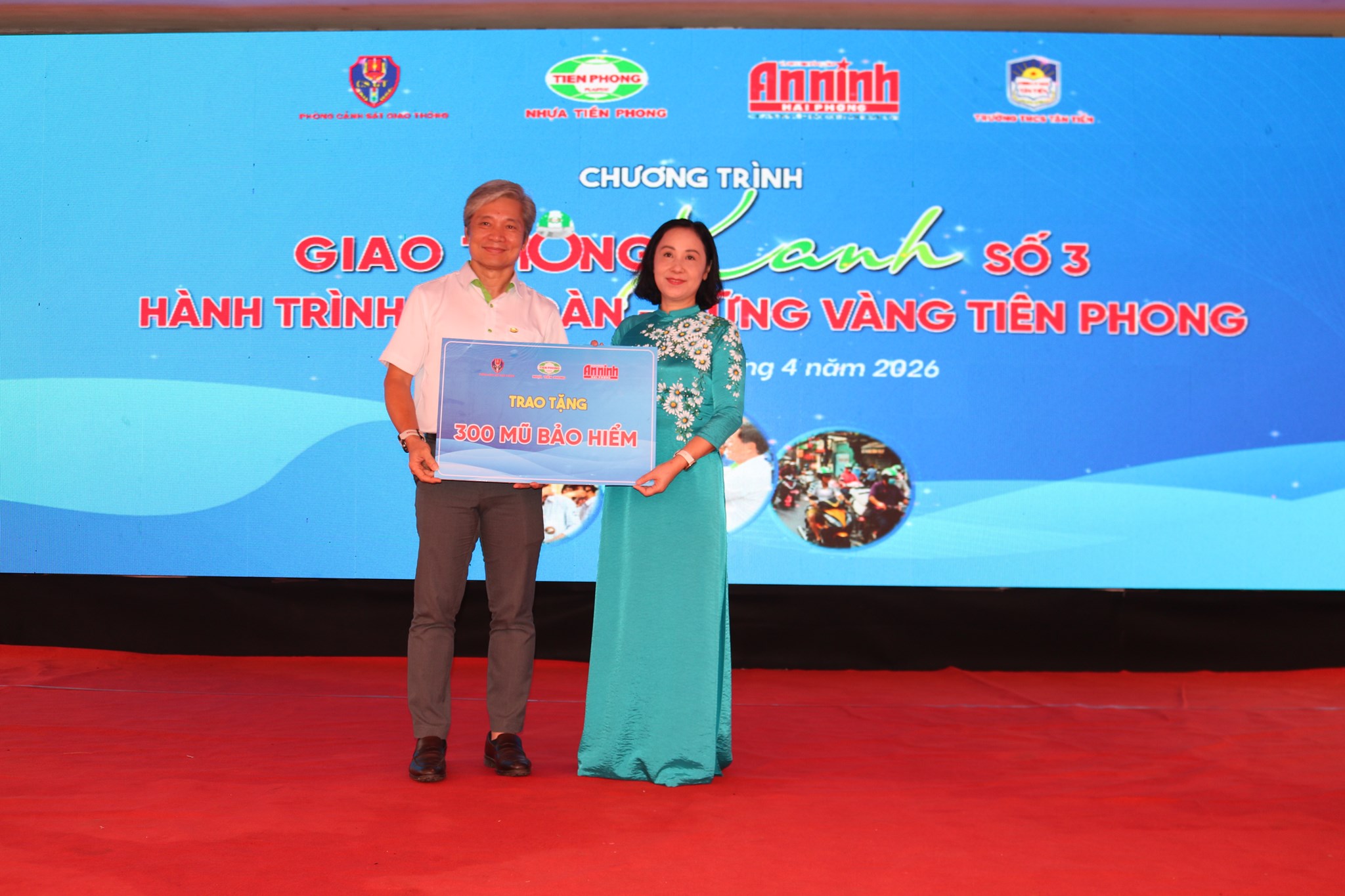 Điểm nhấn của chương trình là hoạt động trao tặng 300 mũ bảo hiểm cho học sinh nhà trường do Công ty Cổ phần Nhựa Thiếu niên Tiền Phong tài trợ.