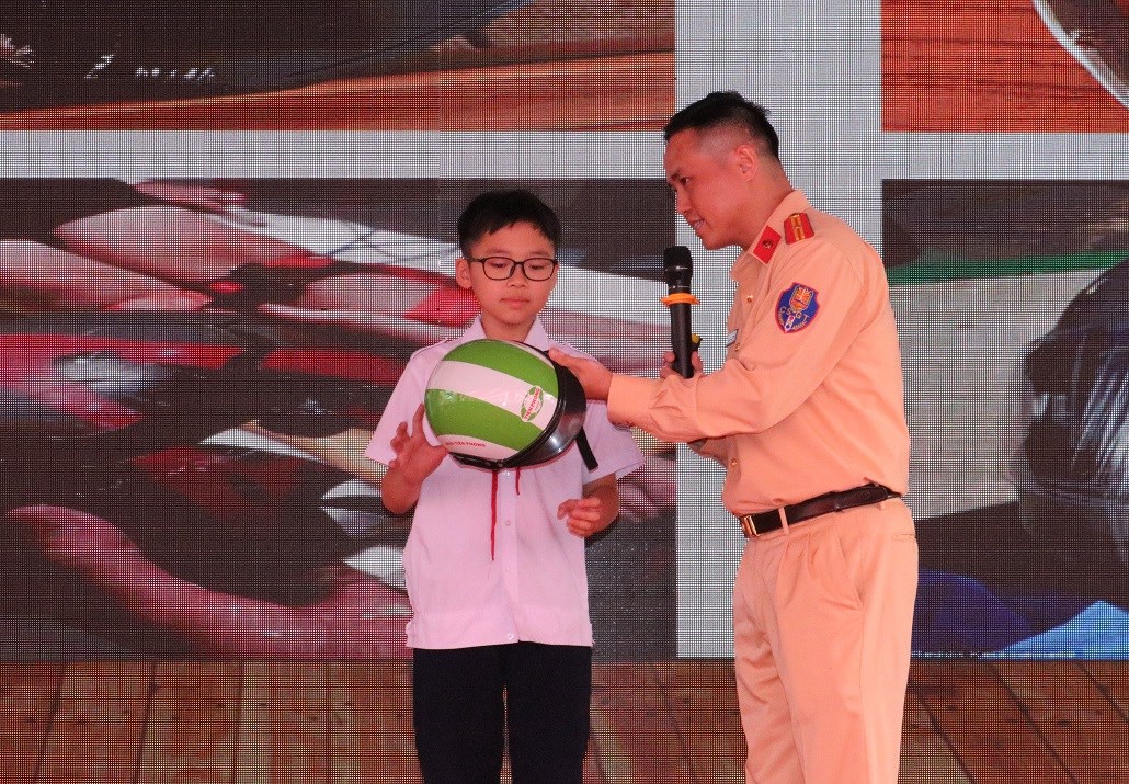 Không chỉ dừng lại ở hoạt động trao tặng mũ bảo hiểm, chương trình còn tập trung vào nội dung cốt lõi là tuyên truyền, phổ biến pháp luật về trật tự an toàn giao thông. Các cán bộ Phòng Cảnh sát giao thông đã trực tiếp truyền đạt những kiến thức quan trọng thông qua hình thức trực quan, kết hợp phần hỏi - đáp tương tác với học sinh. Cách truyền tải sinh động, gần gũi đã tạo không khí sôi nổi, giúp học sinh dễ tiếp thu, ghi nhớ và nâng cao ý thức chấp hành pháp luật khi tham gia giao thông.