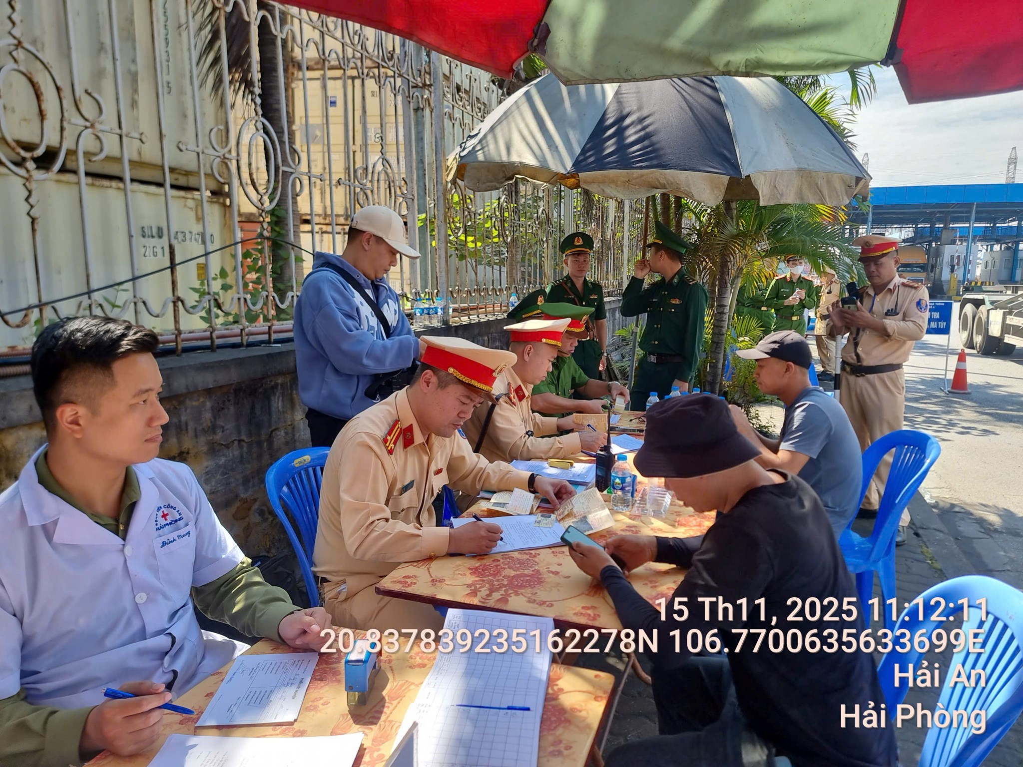 Trong cùng ngày, Đội Cảnh sát giao thông đường bộ số 4 (Phòng Cảnh sát giao thông) cùng Tổ công tác liên ngành triển khai kiểm tra nồng độ cồn, ma túy tại khu vực Cảng Đình Vũ, Hải Phòng. Qua kiểm tra 244 lái xe đầu kéo, đơn vị chưa phát hiện trường hợp nào có chất ma túy trong cơ thể, tuy nhiên phát hiện 01 trường hợp có nồng độ cồn với mức phạt 7 triệu đồng.