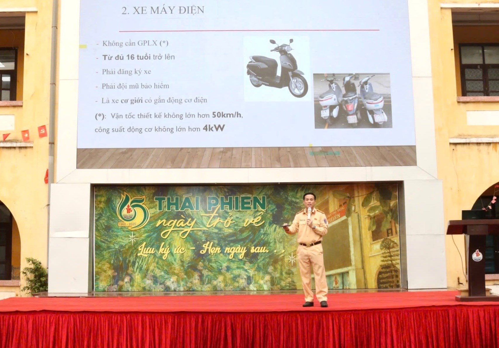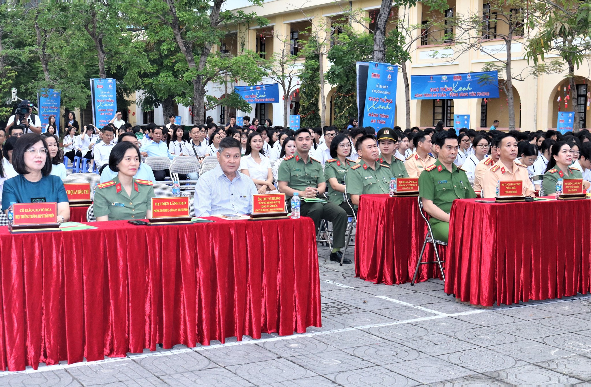 Sáng 20/4/2026, tại Trường THPT Thái Phiên, Ban Chuyên đề An ninh Hải Phòng phối hợp Phòng Cảnh sát giao thông và Công ty Cổ phần Nhựa Thiếu niên Tiền Phong long trọng tổ chức lễ ra mắt Chương trình “Giao thông xanh - Hành trình an toàn - Vững vàng tiên phong”. Tham dự buổi lễ có Đại tá Nguyễn Đức Thìn - Phó Giám đốc CATP. Tham dự buổi lễ có Đại tá Nguyễn Đức Thìn - Phó Giám đốc CATP cùng lãnh đạo Phòng Tham mưu, Phòng Công tác chính trị, Phòng Cảnh sát giao thông và Ban Chuyên đề An ninh Hải Phòng. Về phía doanh nghiệp đồng hành có ông Chu Văn Phương - Thành viên Hội đồng quản trị, Tổng Giám đốc Công ty CP Nhựa Thiếu niên Tiền Phong. Đại diện nhà trường có cô giáo Cao Tố Nga - Hiệu trưởng Trường THPT Thái Phiên cùng tập thể cán bộ, giáo viên và hơn 500 học sinh khối lớp 10.