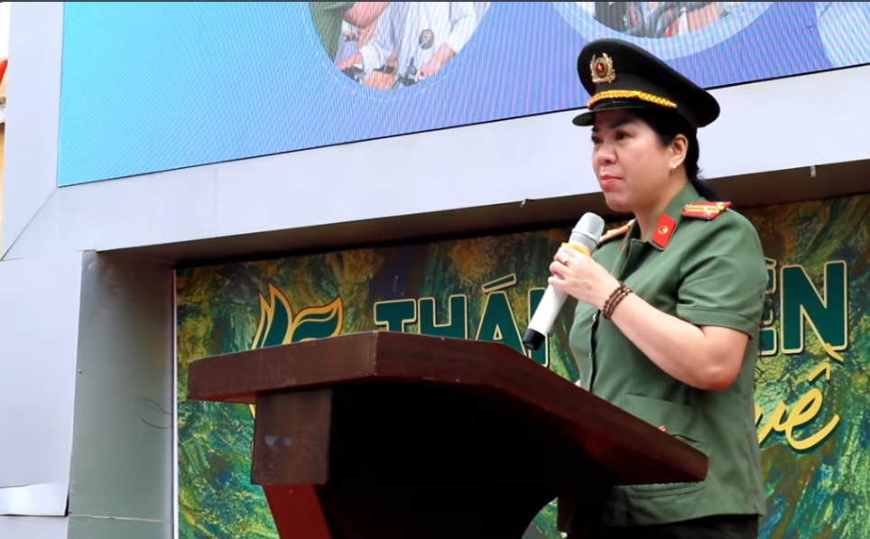 Thượng tá Nguyễn Thu Hồng, Trưởng ban Chuyên đề An ninh Hải Phòng phát biểu tại chương trình