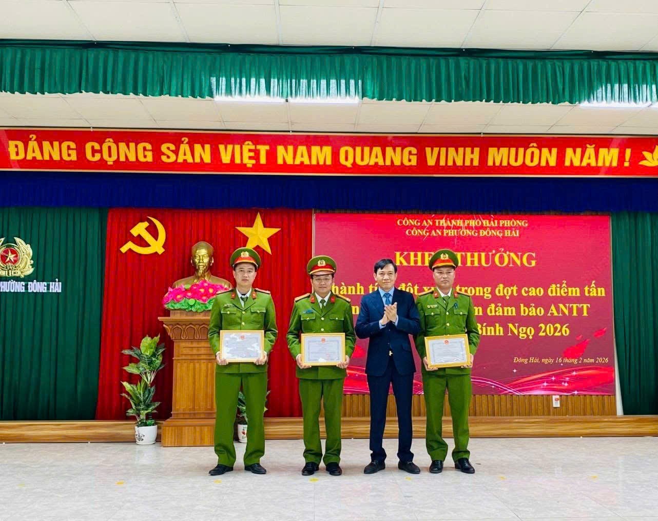 Tối 16/02/2026 (30 Tết), Đoàn công tác do đồng chí Nguyễn Trọng Khiêm - Phó Bí thư Đảng ủy, Chủ tịch UBND phường Đông Hải làm trưởng đoàn đến thăm, chúc Tết, động viên cán bộ, chiến sĩ Công an phường Đông Hải và trao thưởng đột xuất cho tập thể đơn vị đã có thành tích trong bảo đảm an ninh trật tự trên địa bàn.