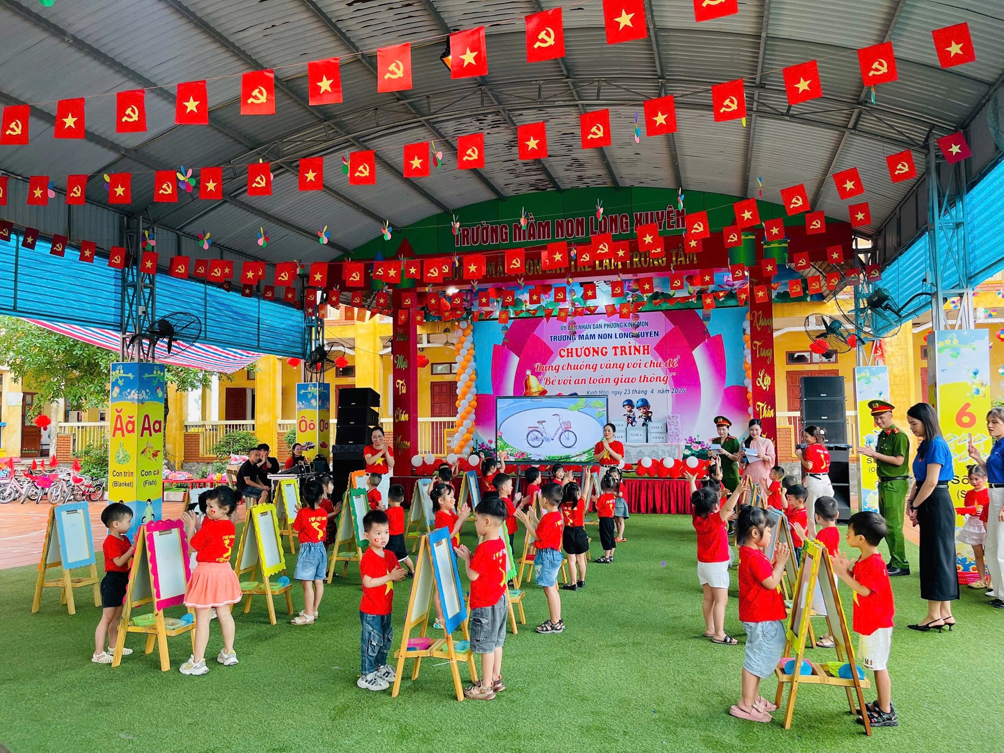Trong các ngày 23/4/2026 và 24/4/2026, tại Trường Mầm non Long Xuyên và Trường Mầm non Bluesky Montessori Kinh Môn, Công an phường Kinh Môn đã phối hợp cùng Đoàn Thanh niên phường và nhà trường tổ chức chương trình tuyên truyền với chủ đề “Bé với an toàn giao thông”.