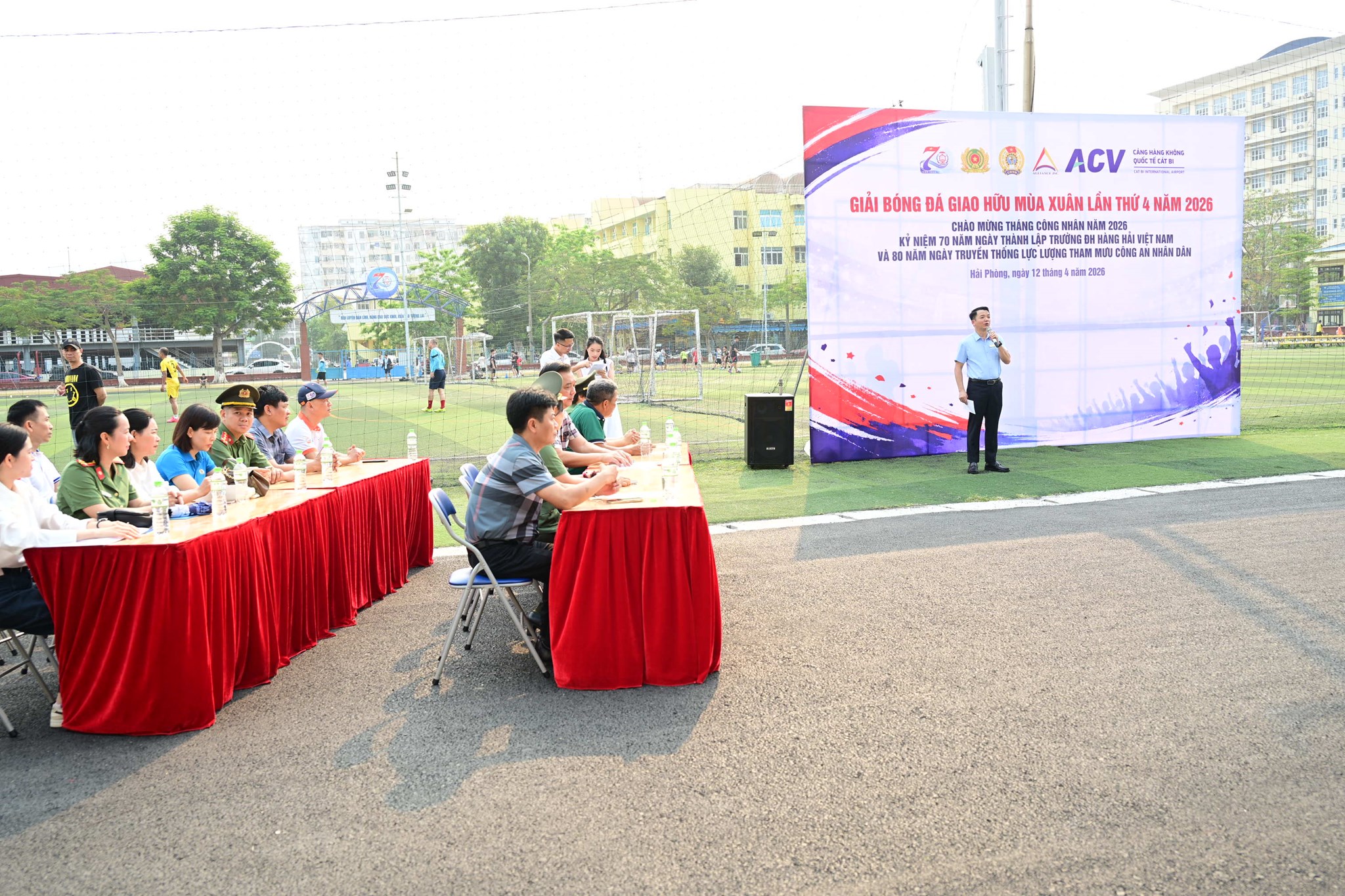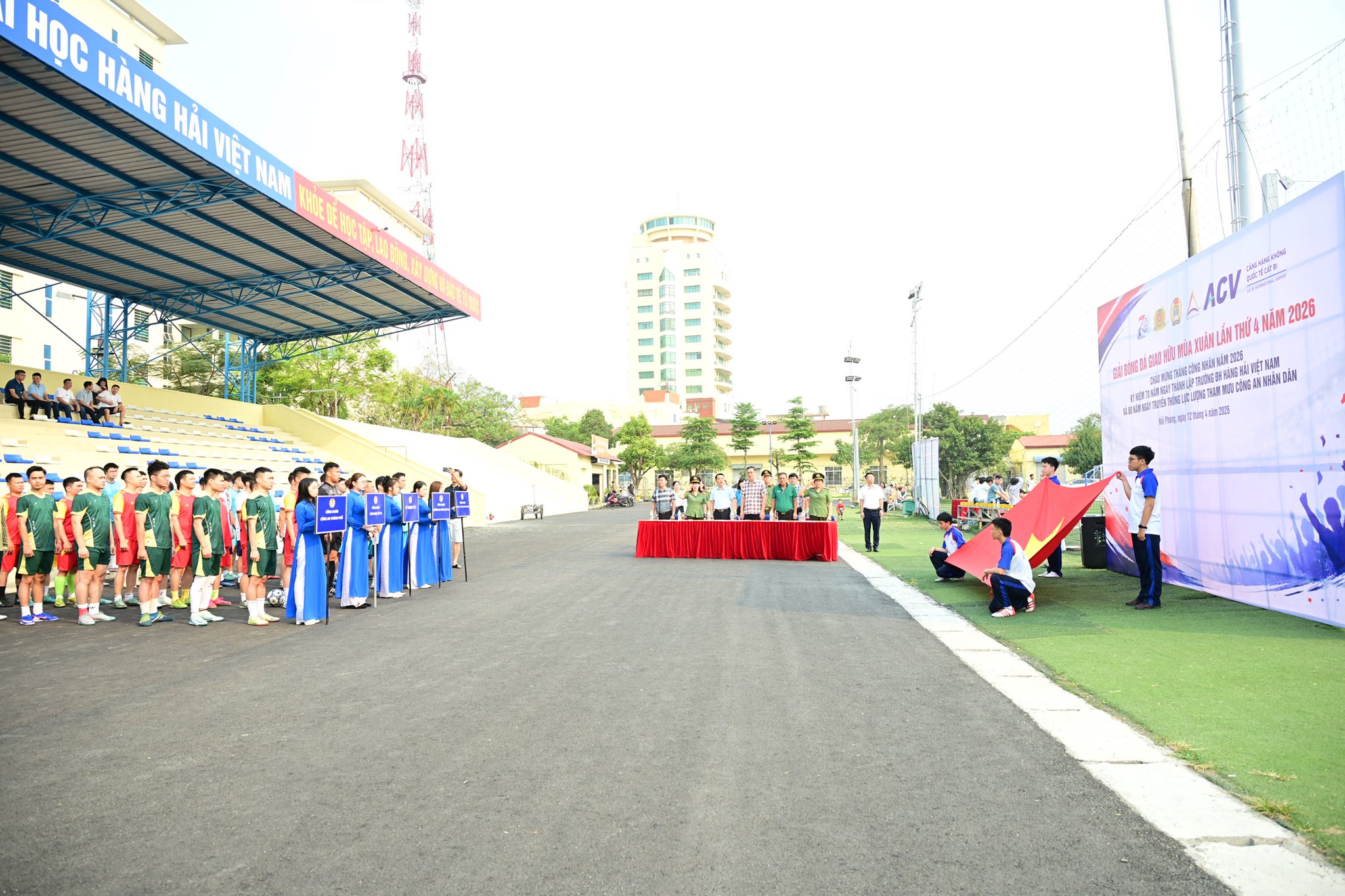 Sáng ngày 12/4/2026, tại sân bóng đá Trường Đại học Hàng hải Việt Nam đã diễn ra Lễ khai mạc Giải bóng đá “Giao hữu mùa Xuân” lần thứ IV, năm 2026. Đây là hoạt động thể thao ý nghĩa nhằm chào mừng Tháng Công nhân năm 2026, kỷ niệm 70 năm Ngày thành lập Trường Đại học Hàng hải Việt Nam (01/4/1956 - 01/4/2026) và 80 năm Ngày truyền thống các lực lượng trong Công an nhân dân. Giải Giải bóng đá “Giao hữu mùa Xuân” năm nay do Công đoàn Trường Đại học Hàng hải Việt Nam phối hợp cùng Công đoàn Công an Thành phố, Công đoàn Công ty Cổ phần Hàng hải Liên minh và Công đoàn Cảng hàng không quốc tế Cát Bi tổ chức.