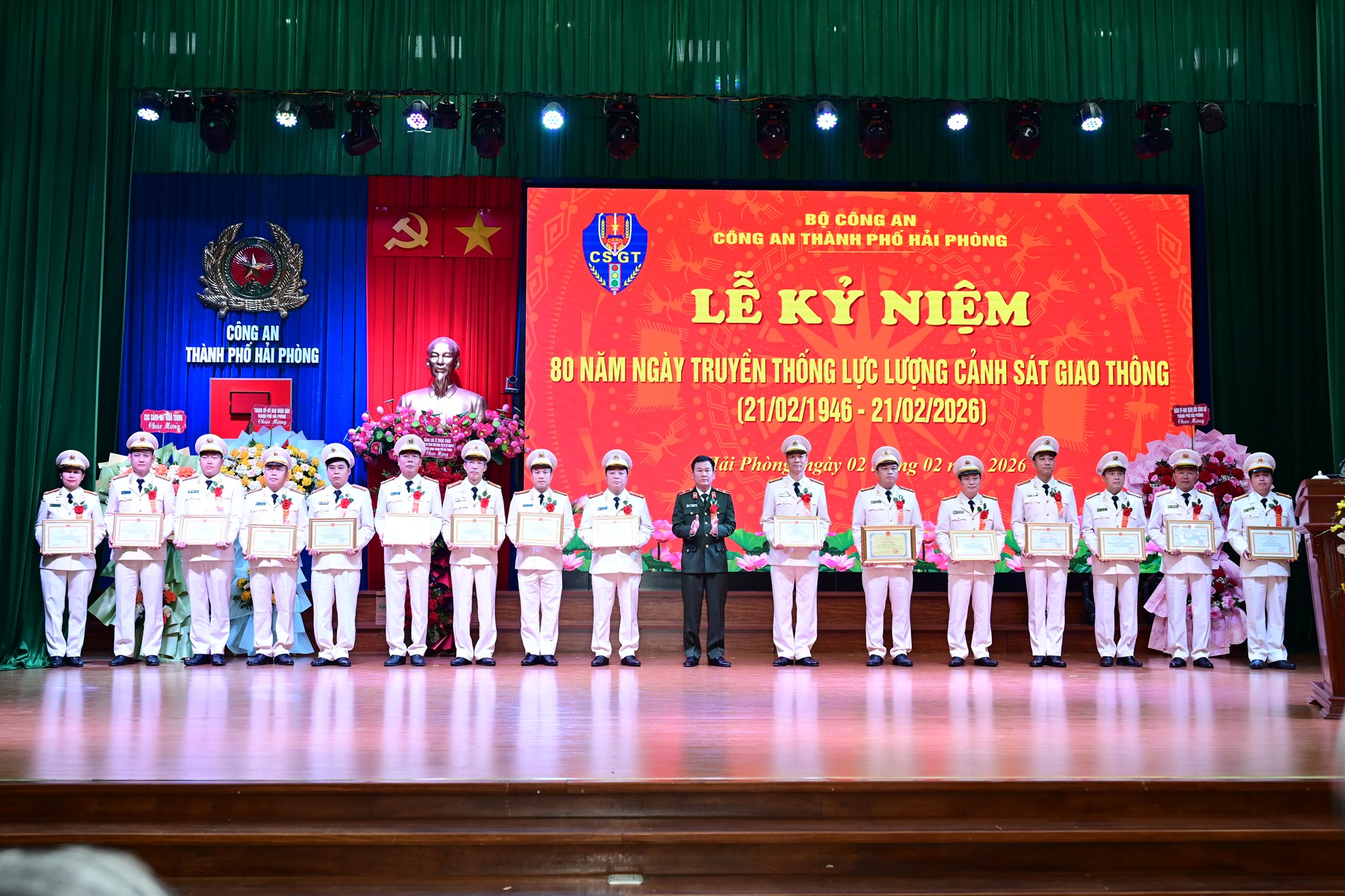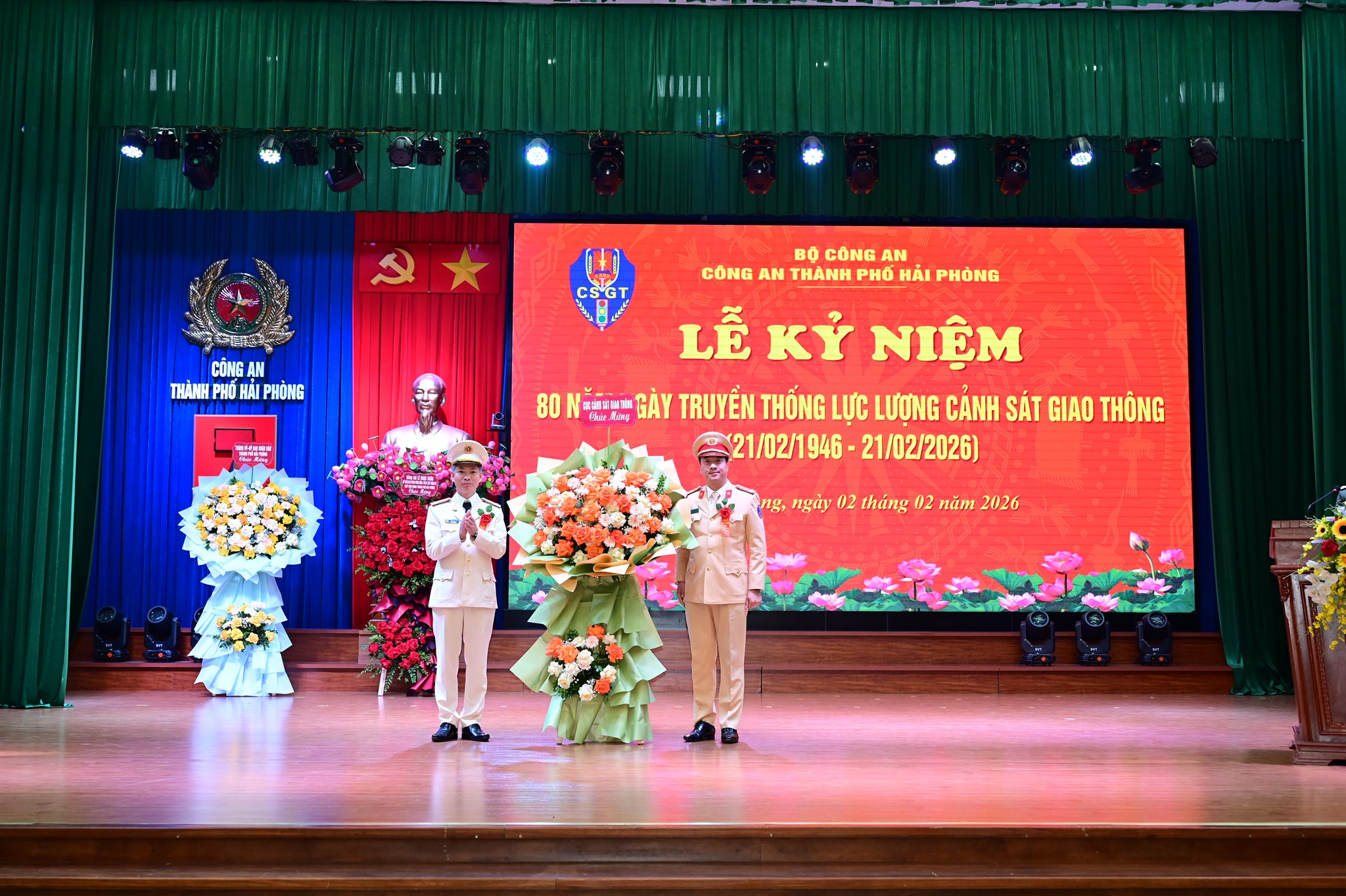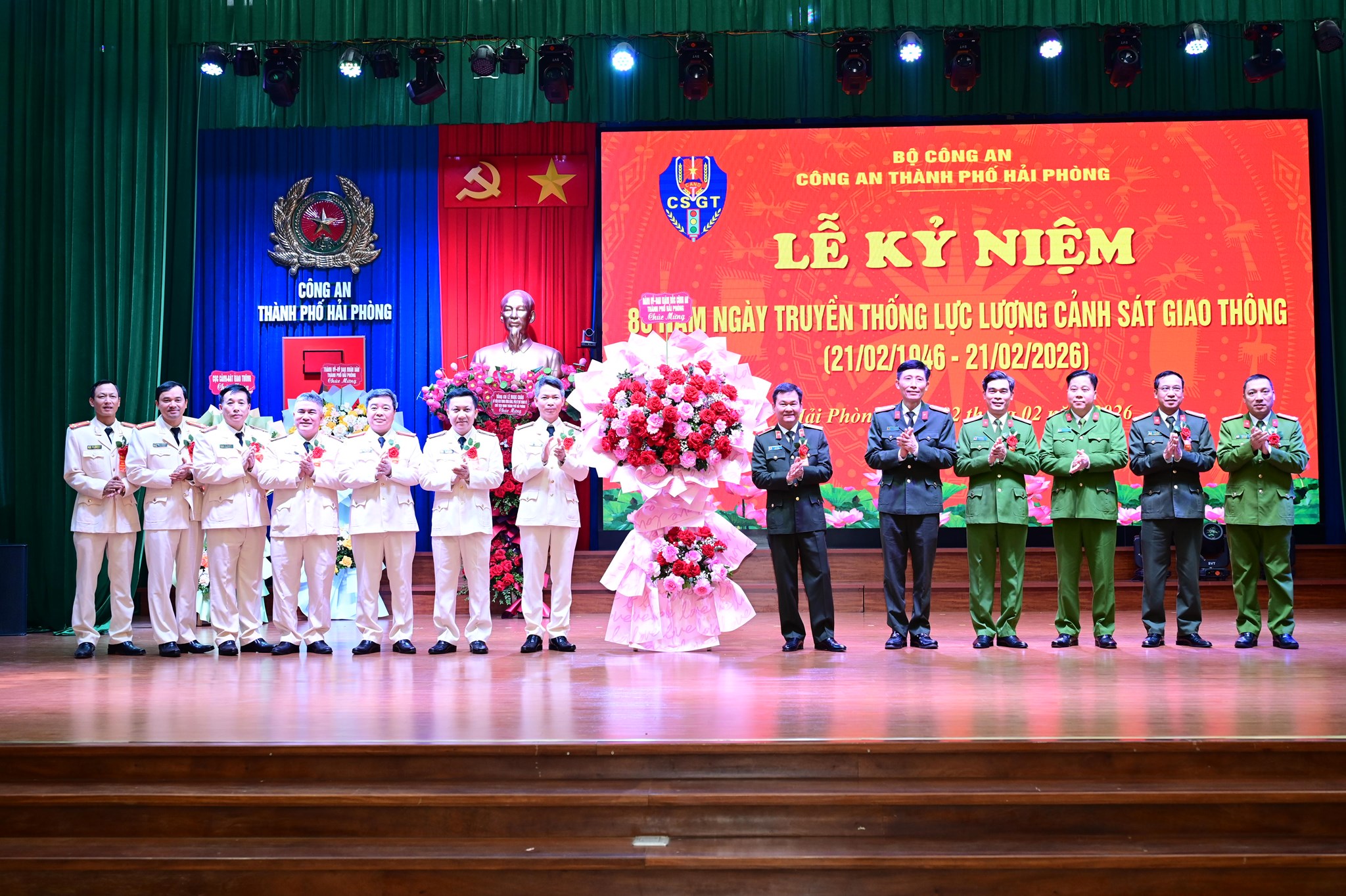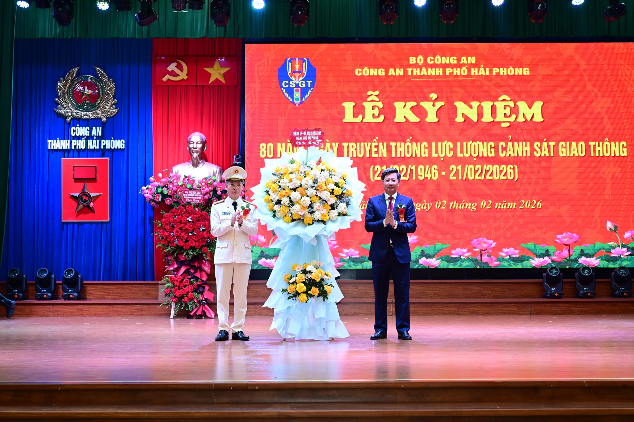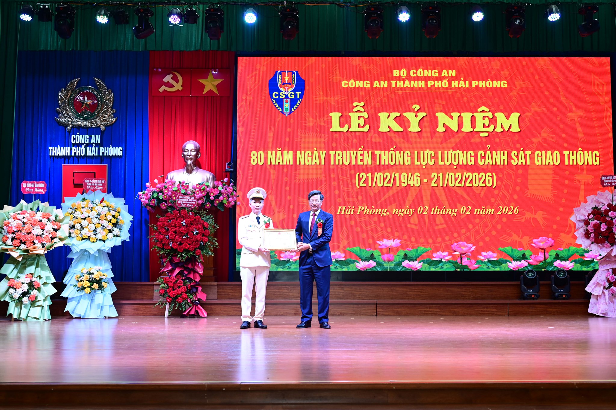 Chiều 02/02/2026, CATP Hải Phòng long trọng tổ chức Lễ kỷ niệm 80 năm Ngày truyền thống lực lượng Cảnh sát giao thông (21/02/1946 * 21/02/2026). Dự Lễ kỷ niệm, đại biểu thành phố có các đồng chí: Lê Anh Quân - Uỷ viên Ban Thường vụ Thành uỷ, Phó Chủ tịch thường trực UBND thành phố, Phó Trưởng ban Thường trực Ban An toàn giao thông (ATGT) thành phố; đại diện lãnh đạo Văn phòng UBND thành phố, Ban ATGT thành phố; Văn phòng Ban ATGT thành phố; lãnh đạo một số sở, ban, ngành, đơn vị, địa phương.
