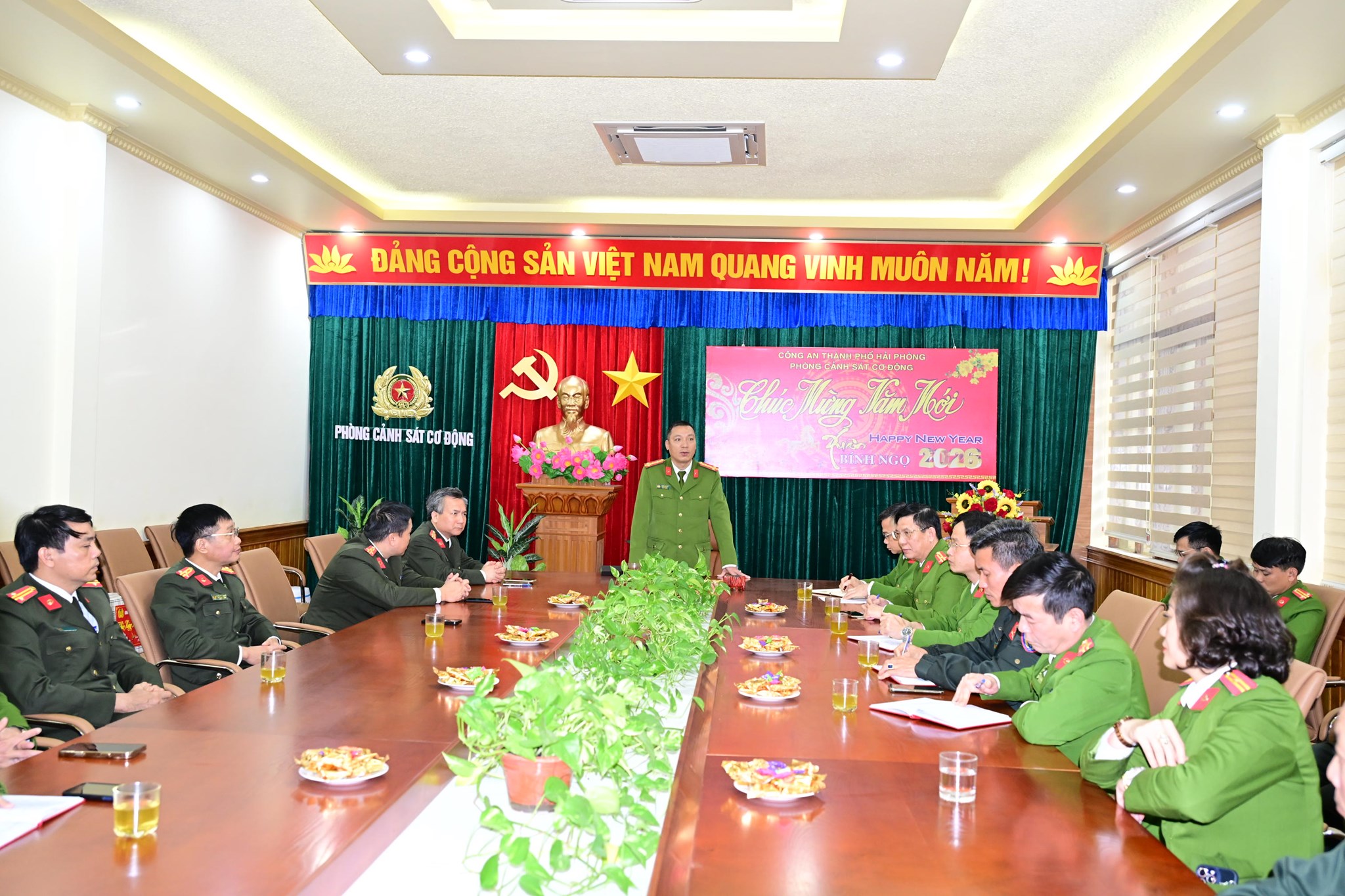 Nhân dịp năm mới, Đại tá Phạm Chí Hiếu - Phó Giám đốc CATP gửi lời chúc mừng năm mới sức khỏe, hạnh phúc, an khang đến toàn thể cán bộ, chiến sĩ; mong muốn các đơn vị tiếp tục phát huy truyền thống đoàn kết, bản lĩnh, kỷ cương, chủ động, sáng tạo, quyết tâm hoàn thành xuất sắc mọi nhiệm vụ được giao trong năm công tác 2026.