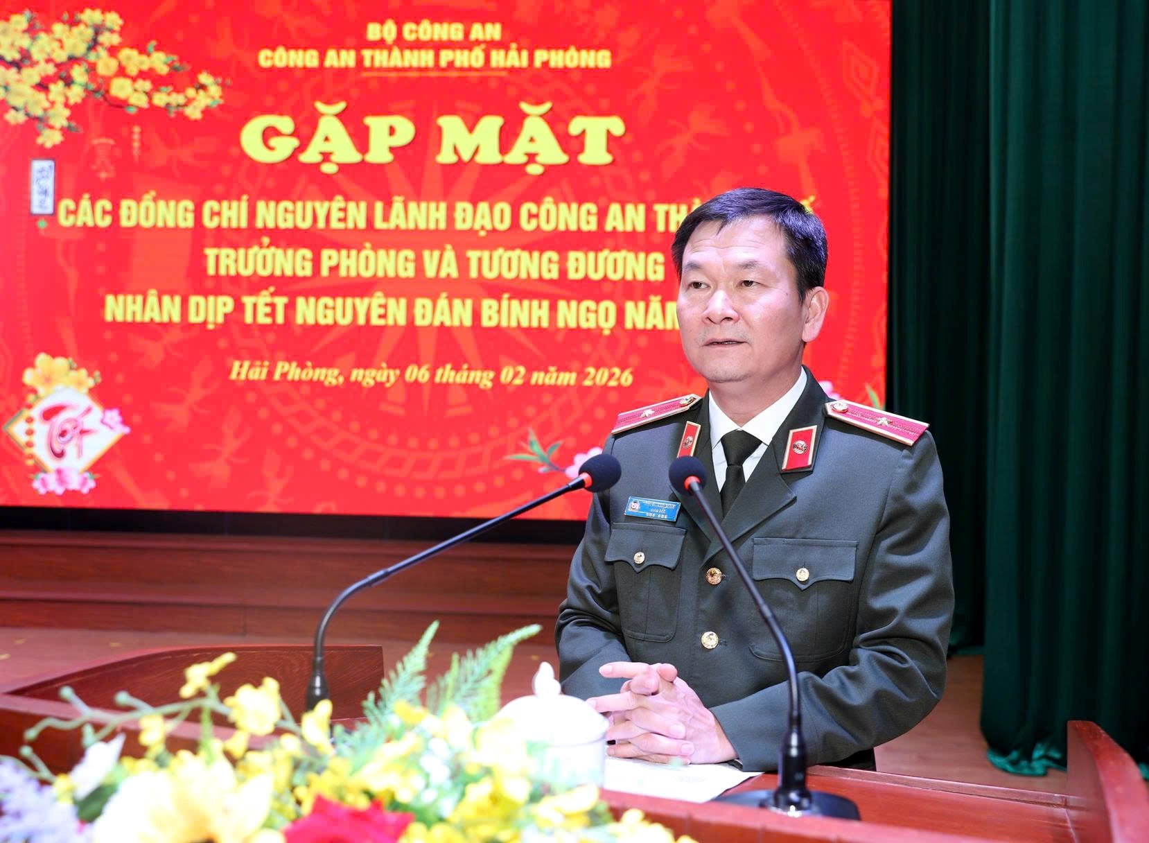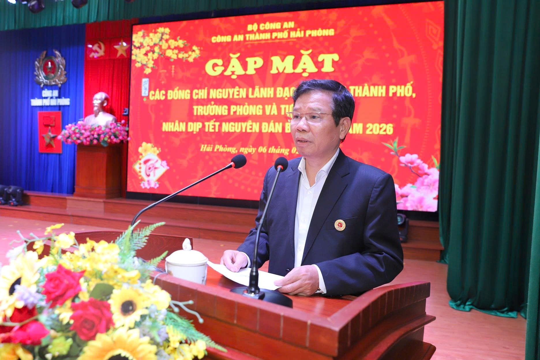 Phát biểu tại buổi gặp mặt, Thiếu tướng Bùi Quang Bình, Giám đốc CATP bày tỏ sự trân trọng đối với những công lao, cống hiến to lớn của các đồng chí nguyên lãnh đạo CATP, nguyên Trưởng phòng và tương đương qua các thời kỳ đối với truyền thống vẻ vang của toàn lực lượng CATP, đồng thời bày tỏ mong muốn các đồng chí nguyên lãnh đạo CATP, nguyên Trưởng phòng và tương đương phát huy trí tuệ, kinh nghiệm, có những ý kiến đóng góp quý báu với lực lượng CATP trong triển khai thực hiện nhiệm vụ, giải pháp bảo vệ ANTT và xây dựng lực lượng CATP trong sạch, vững mạnh, vững vàng bước vào kỷ nguyên mới của dân tộc, đặc biệt là việc thực hiện mục tiêu xây dựng Hải Phòng trở thành thành phố không ma túy, tiến tới không tội phạm; phấn đấu đạt danh hiệu Đơn vị Anh hùng lực lượng vũ trang nhân dân (lần 2).