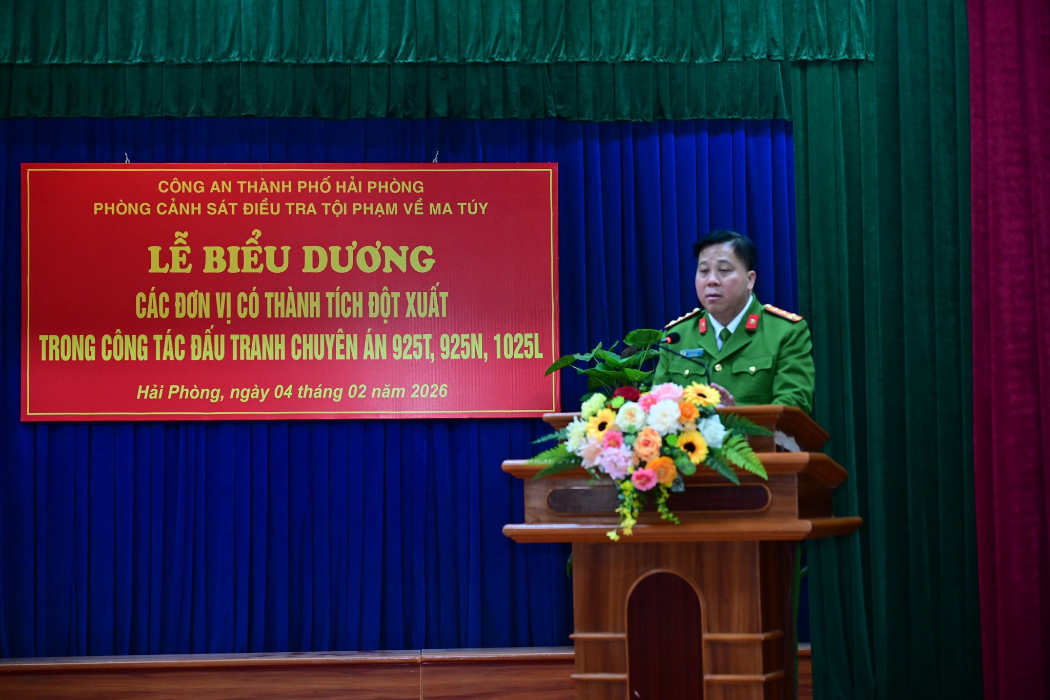 Phát biểu tại lễ biểu dương, Đại tá Bùi Trung Thành - Phó Giám đốc CATP ghi nhận, đánh giá cao tinh thần trách nhiệm, sự phối hợp hiệu quả giữa Phòng Cảnh sát ĐTTP về ma túy với lực lượng Bộ đội Biên phòng Hải Phòng, Chi Cục Hải quan Hải Phòng, Phòng Cảnh sát Cơ động, Công an phường An Biên.