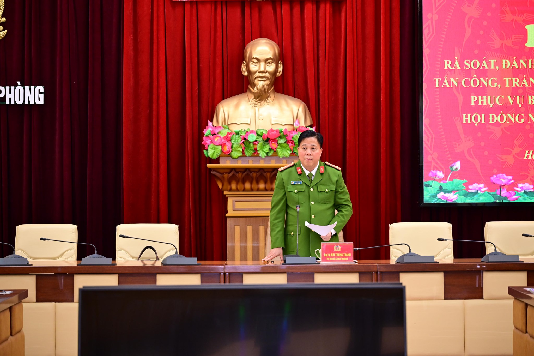 Đại tá Bùi Trung Thành, Phó Giám đốc CATP phát biểu chỉ đạo hội nghị