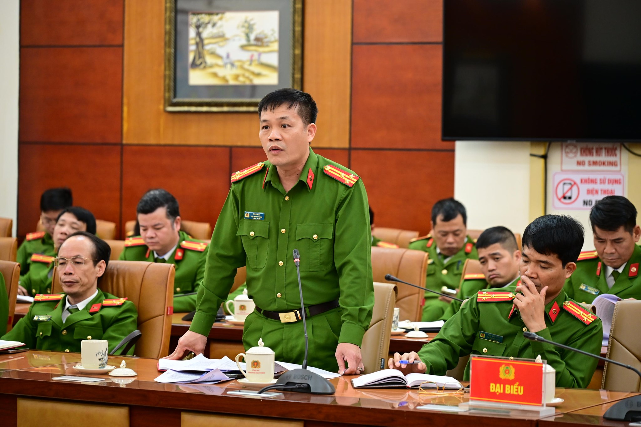 Thượng tá Trần Hiệu, Phó Trưởng Phòng Cảnh sát hình sự CATP báo cáo tại hội nghị