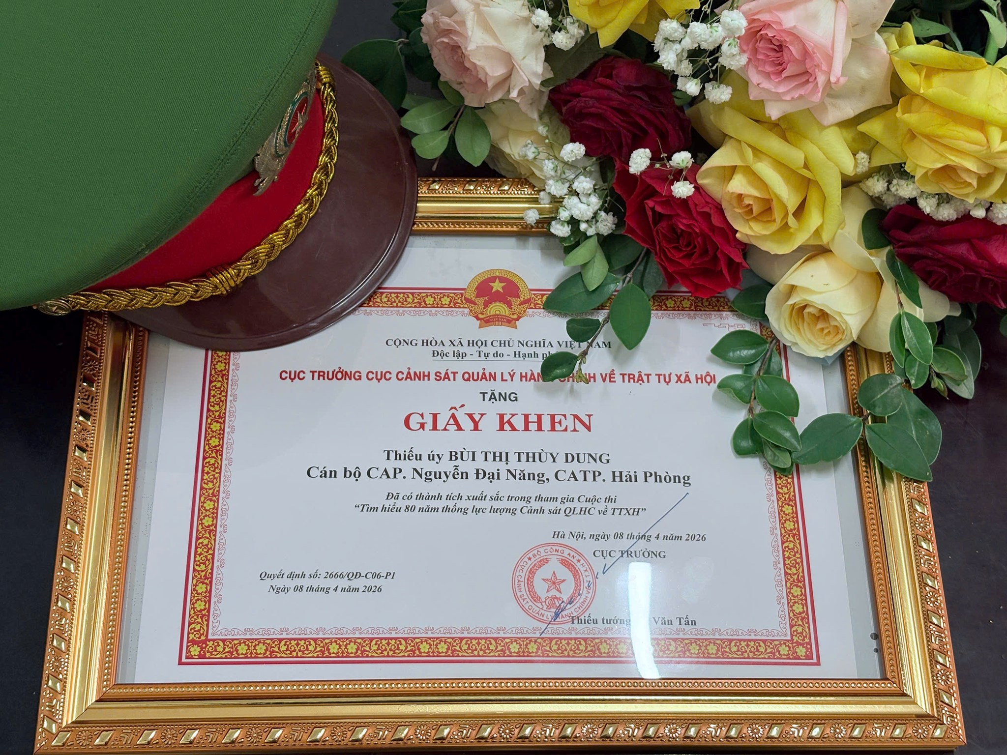 Kết quả nổi bật trong đợt thi đua, đồng chí Bùi Thị Thùy Dung, cán bộ Công an phường Nguyễn Đại Năng, đã xuất sắc đạt giải Khuyến khích cấp Bộ tại cuộc thi “Tìm hiểu 80 năm truyền thống lực lượng Cảnh sát Quản lý hành chính về trật tự xã hội”. Thành tích này không chỉ thể hiện trí tuệ, tinh thần trách nhiệm của cá nhân đồng chí mà còn đóng góp thiết thực vào phong trào thi đua “Ba nhất” của lực lượng Công an thành phố Hải Phòng.