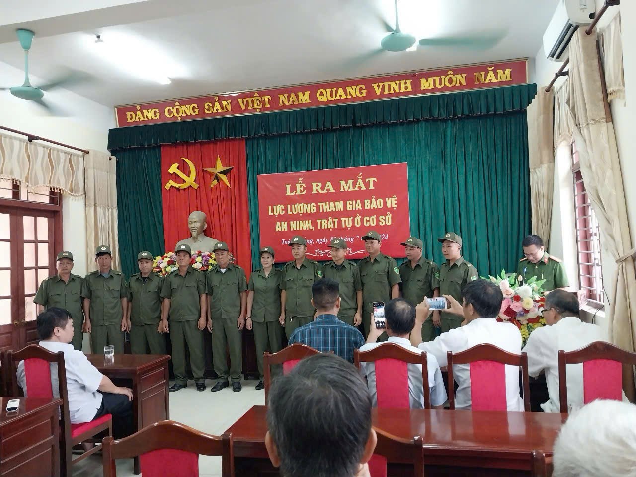 Ngày 01/7/2024, Tổ phó Tổ bảo vệ an ninh trật tự (thứ 6 từ trái sang) vinh dự tham gia lực lượng tham gia bảo vệ ANTT ở cơ sở với vai trò Tổ phó Tổ ANTT cơ sở thôn Phạm TrungLà nữ cán bộ duy nhất trong số 87 thành viên bảo vệ ANTT tại địa phương, cựu giáo viên Lê Thị Hoa luôn phát huy tinh thần gương mẫu, sát dân. Điển hình trong đợt cao điểm tháng 3/2026, Tổ phó Tổ bảo vệ an ninh trật tự đã không quản ngày đêm "đi từng ngõ, gõ từng nhà" để hỗ trợ tích hợp hơn 1.600 dữ liệu bảo hiểm y tế vào ứng dụng VNeID. Hiện tại, Tổ phó Tổ bảo vệ an ninh trật tự tiếp tục tích cực vận động Nhân dân làm thủ tục định danh điện tử mức độ 2 cho trẻ em từ 6 đến 14 tuổi.