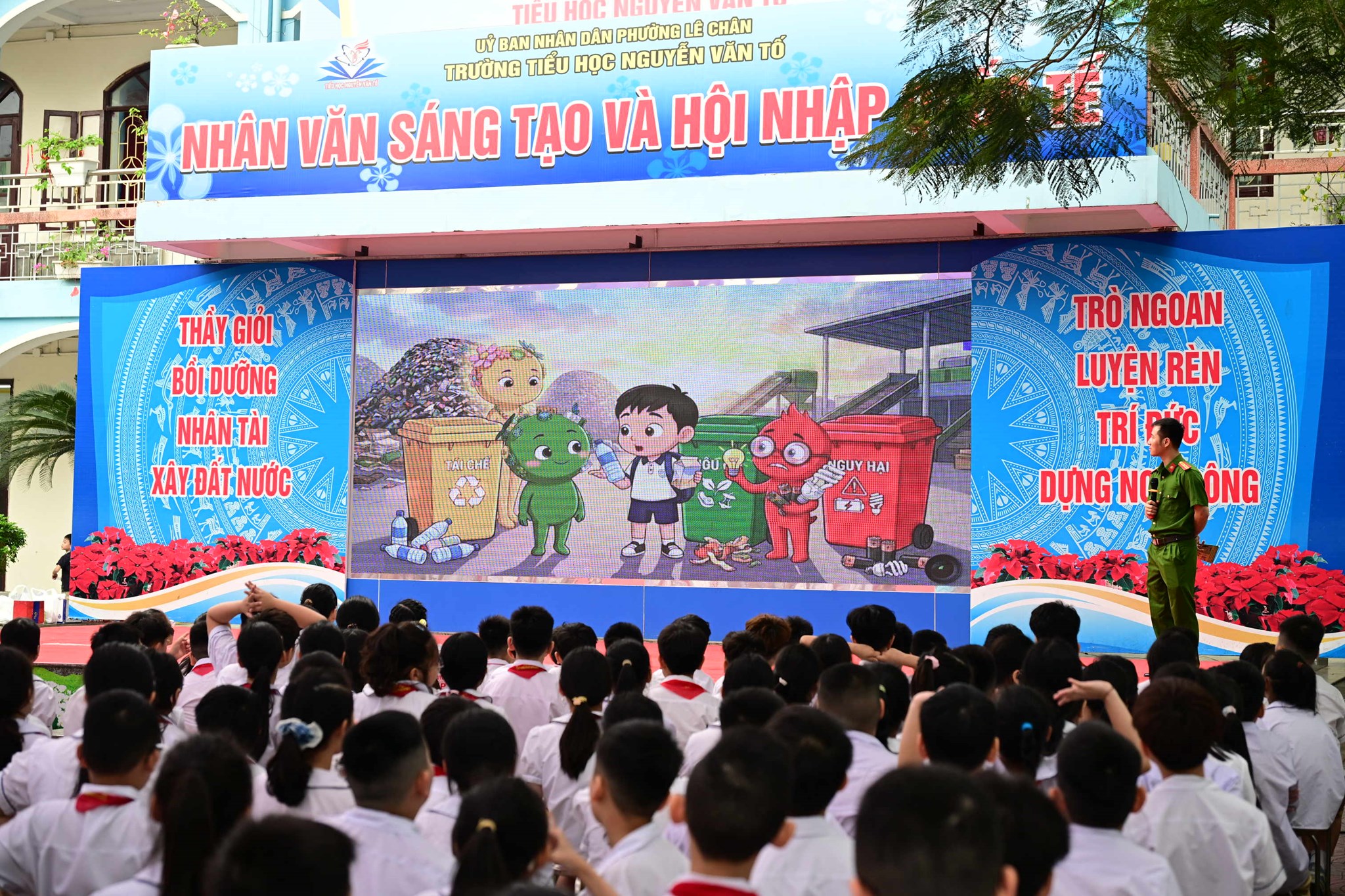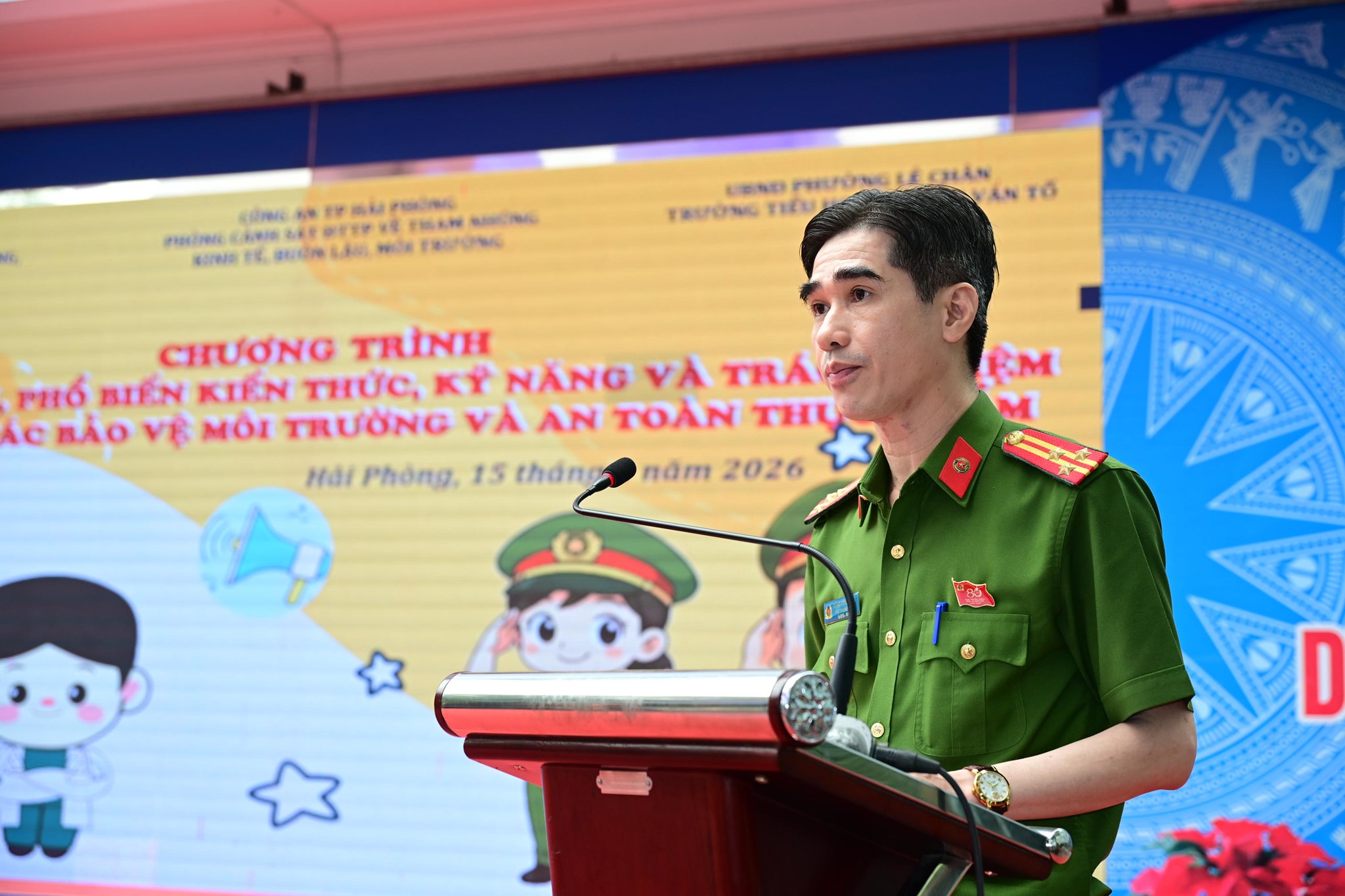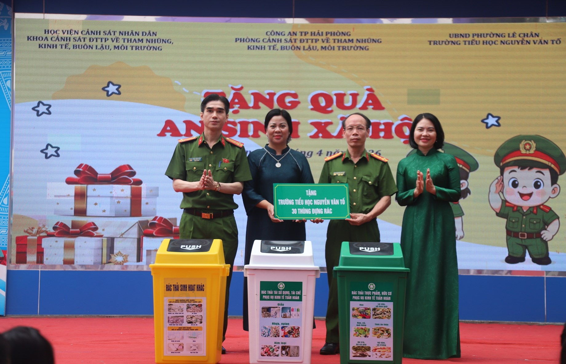 Sáng 15/4/2026, Phòng Cảnh sát Kinh tế (CATP) phối hợp cùng Khoa Kinh tế môi trường (Học viện Cảnh sát nhân dân) và Trường Tiểu học Nguyễn Văn Tố (phường Lê Chân) tổ chức chương trình tuyên truyền về “Công tác bảo vệ môi trường và an toàn thực phẩm”.