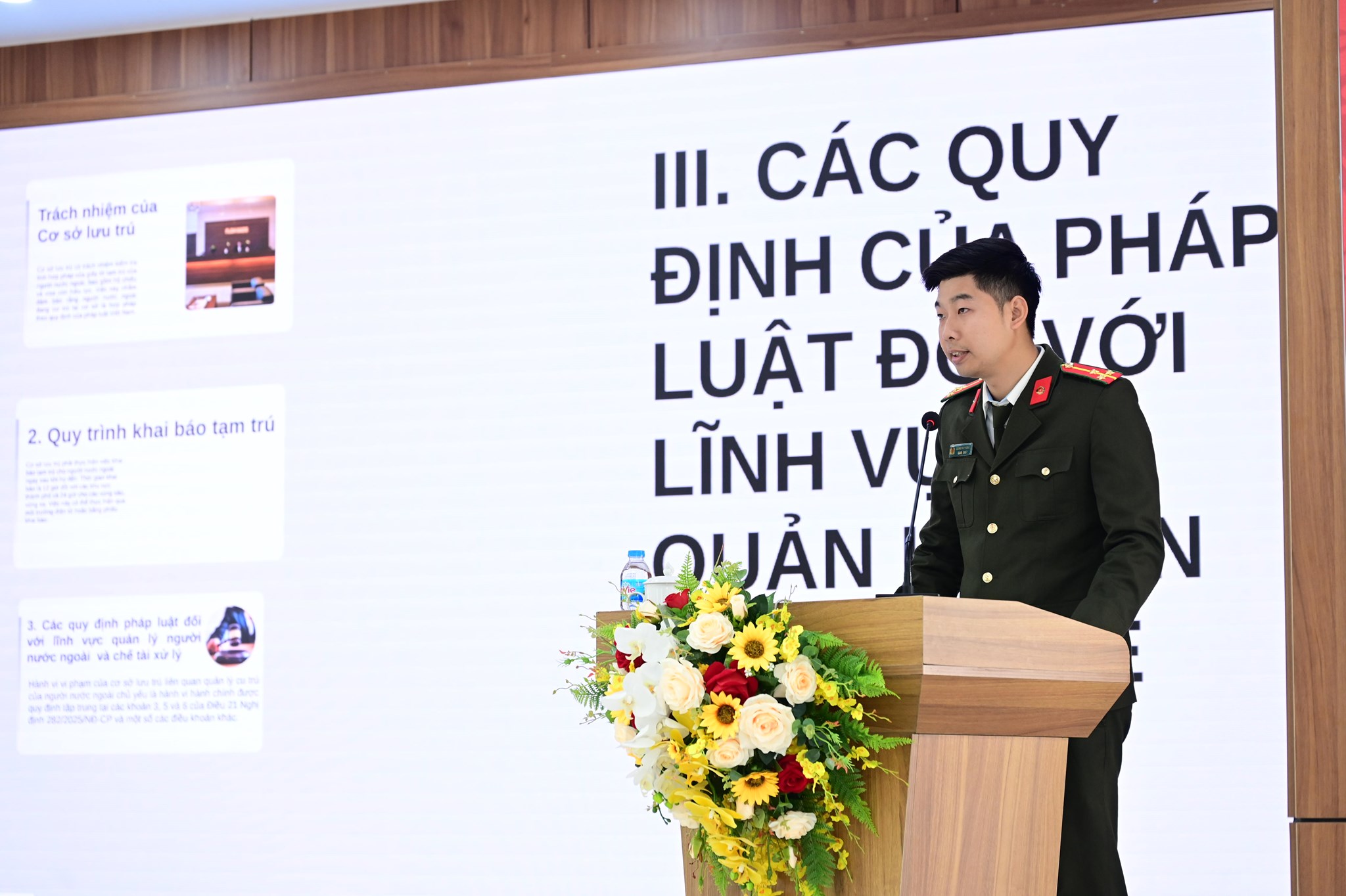 Các đại biểu được phổ biến phương thức, thủ đoạn hoạt động của các loại tội phạm và những hành vi vi phạm pháp luật liên quan đến người nước ngoài; hướng dẫn cụ thể các quy định của pháp luật về quản lý cư trú, hoạt động của người nước ngoài tại Việt Nam; quy định đối với các ngành nghề kinh doanh có điều kiện; trách nhiệm của chủ cơ sở lưu trú trong việc khai báo, quản lý, phối hợp với lực lượng Công an.