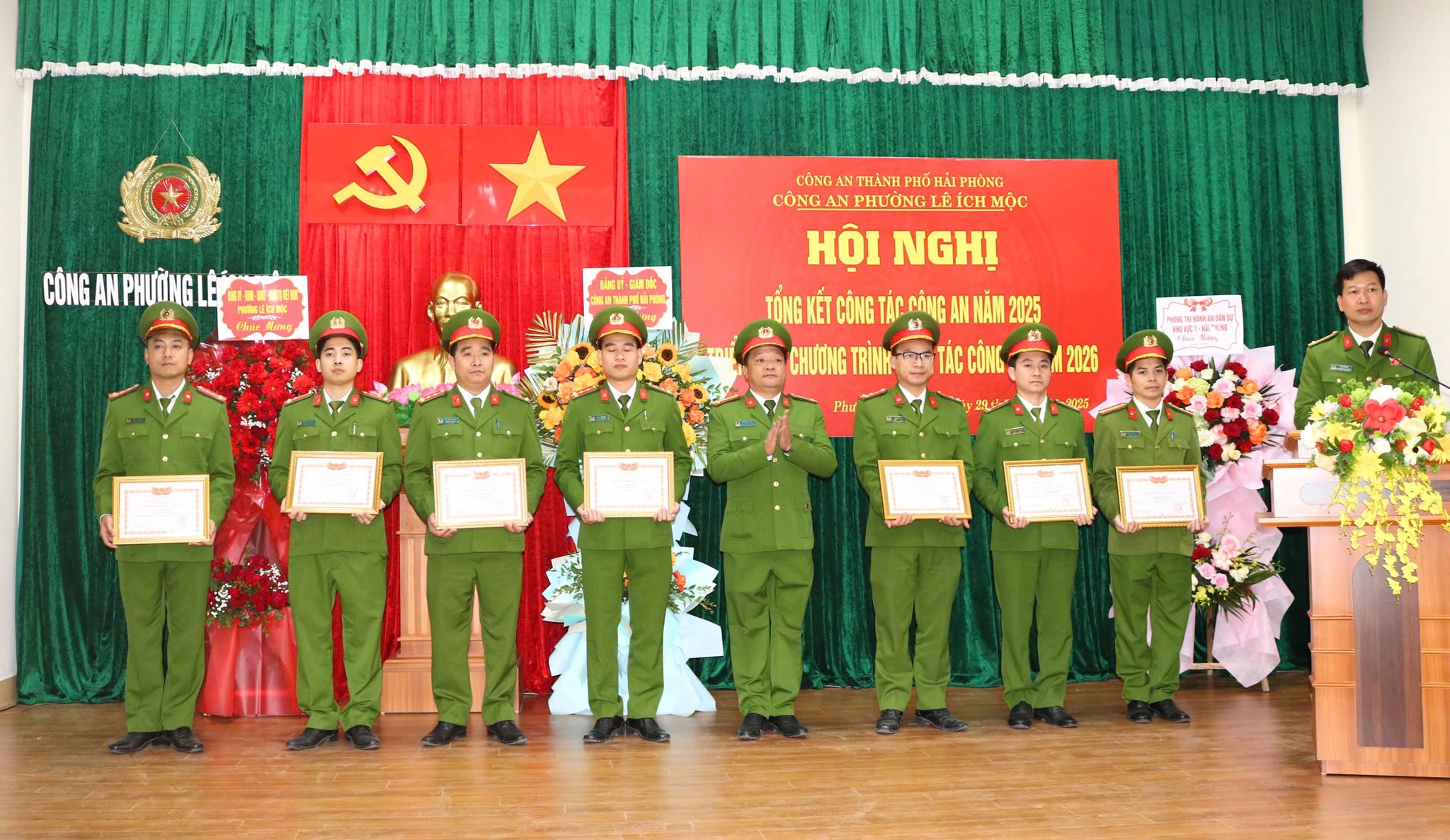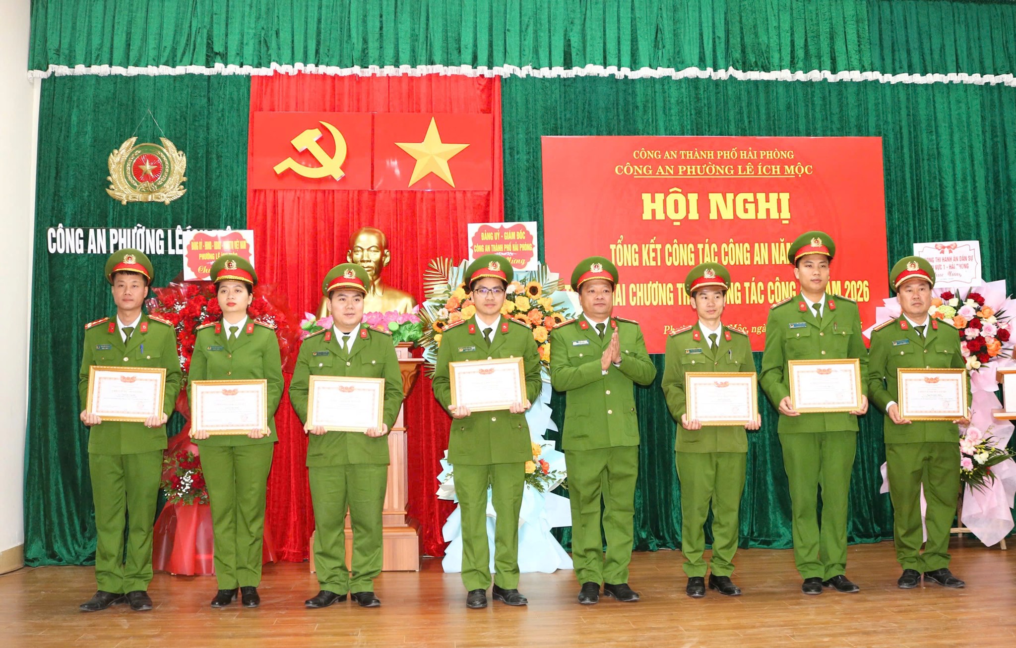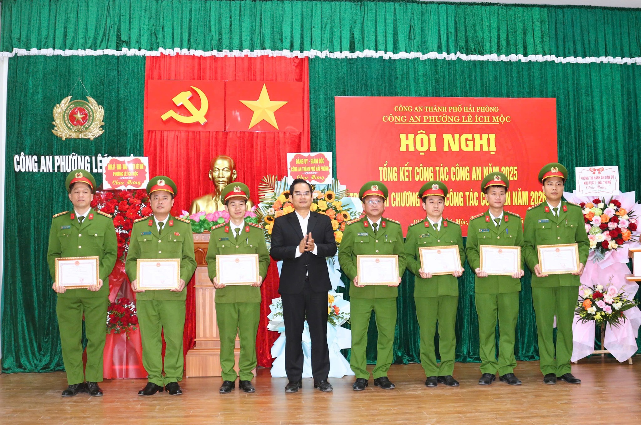 Nhân dịp này, nhiều cá nhân và tập thể thuộc Công an phường Lê Ích Mộc vinh dự nhận Bằng khen, Giấy khen của Giám đốc CATP và Giấy khen của Chủ tịch UBND phường Lê Ích Mộc vì đã có thành tích xuất sắc trong phong trào thi đua “Vì an ninh Tổ quốc” năm 2025.