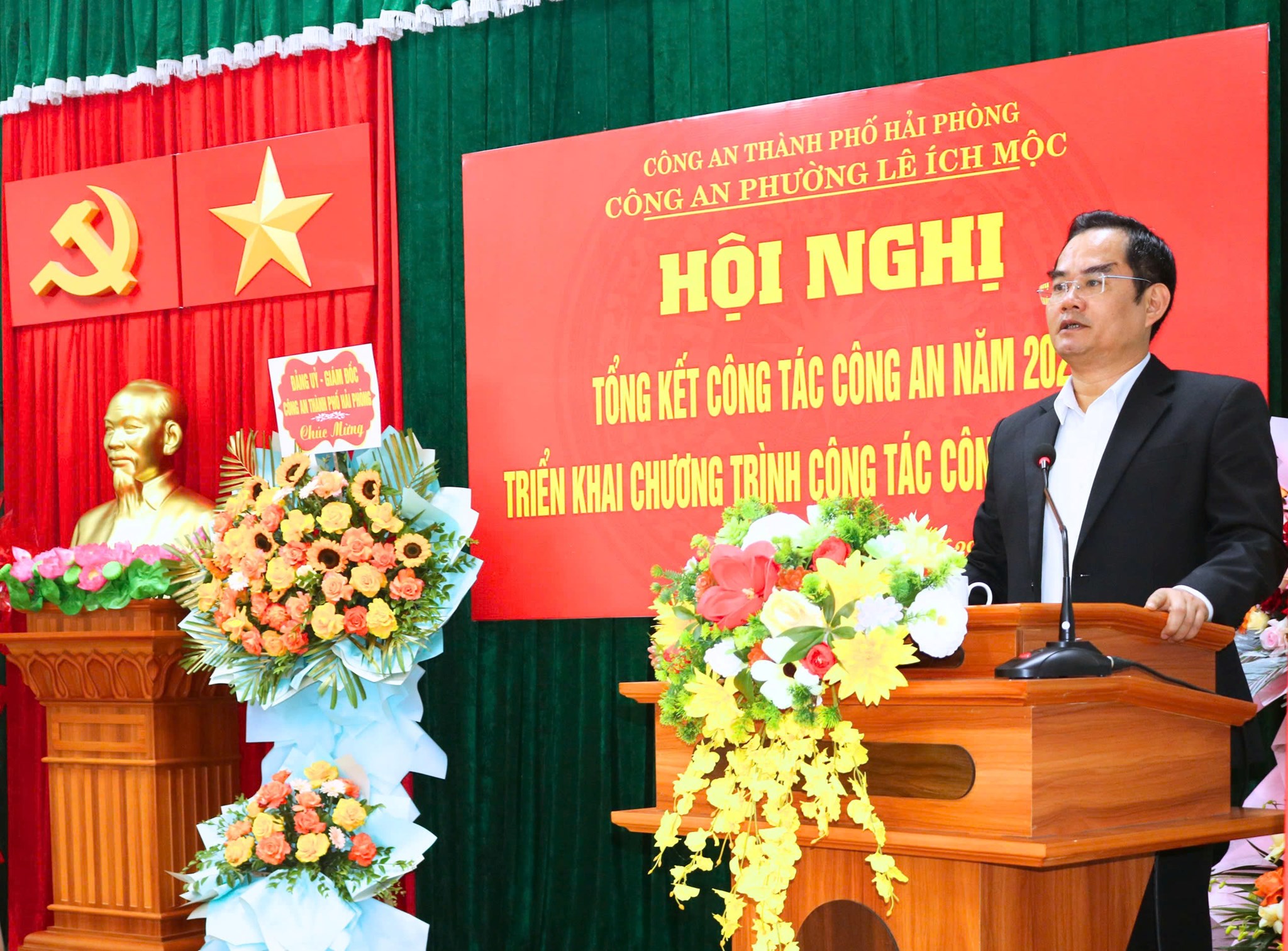 Phát biểu chỉ đạo tại hội nghị, đồng chí Trịnh Quang Trường, Bí thư Đảng ủy, Chủ tịch HĐND phường Lê Ích Mộc ghi nhận và biểu dương những nỗ lực, thành tích, chiến công nổi bật của Công an phường Lê Ích Mộc trong năm 2025; đánh giá cao vai trò nòng cốt của lực lượng Công an phường trong việc giữ vững ổn định an ninh, trật tự ngay từ cơ sở, góp phần quan trọng vào sự phát triển kinh tế - xã hội của địa phương. Đồng chí Bí thư Đảng ủy phường Lê Ích Mộc yêu cầu Công an phường tiếp tục xây dựng lực lượng thật sự trong sạch, vững mạnh, chính quy, tinh nhuệ; siết chặt kỷ luật, kỷ cương, nâng cao trách nhiệm nêu gương của cán bộ, chỉ huy trong thực thi nhiệm vụ. Bên cạnh đó, lực lượng Công an phường phải chủ động nắm chắc tình hình từ sớm, từ xa, từ cơ sở; kịp thời tham mưu, xử lý hiệu quả các vấn đề phát sinh; kiên quyết đấu tranh phòng, chống tội phạm, bảo đảm nguyên tắc không có vùng cấm, không có ngoại lệ, không né tránh trách nhiệm. Đồng chí Trịnh Quang Trường nhấn mạnh, đơn vị tiếp tục đẩy mạnh xây dựng thế trận an ninh Nhân dân gắn với thế trận lòng dân, lấy Nhân dân làm trung tâm, làm chủ thể và là chỗ dựa vững chắc của lực lượng Công an; đồng thời tiếp tục siết chặt kỷ cương, kỷ luật trong thực hiện nhiệm vụ, đáp ứng yêu cầu nhiệm vụ trong tình hình mới.