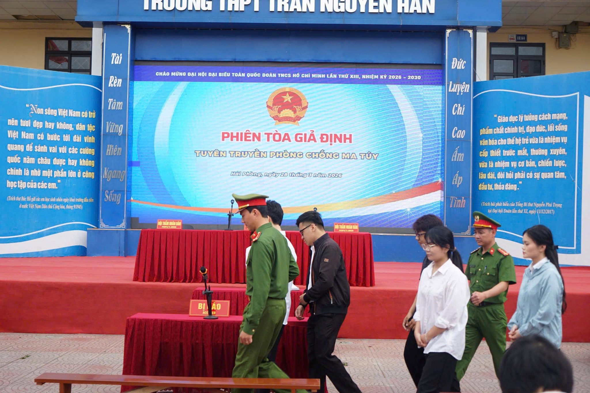 Chương trình “Phiên tòa giả định tuyên truyền phòng, chống ma túy” tại trường THPT Trần Nguyên Hãn