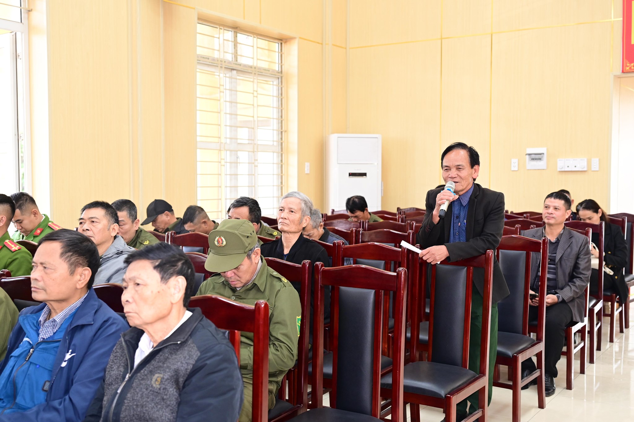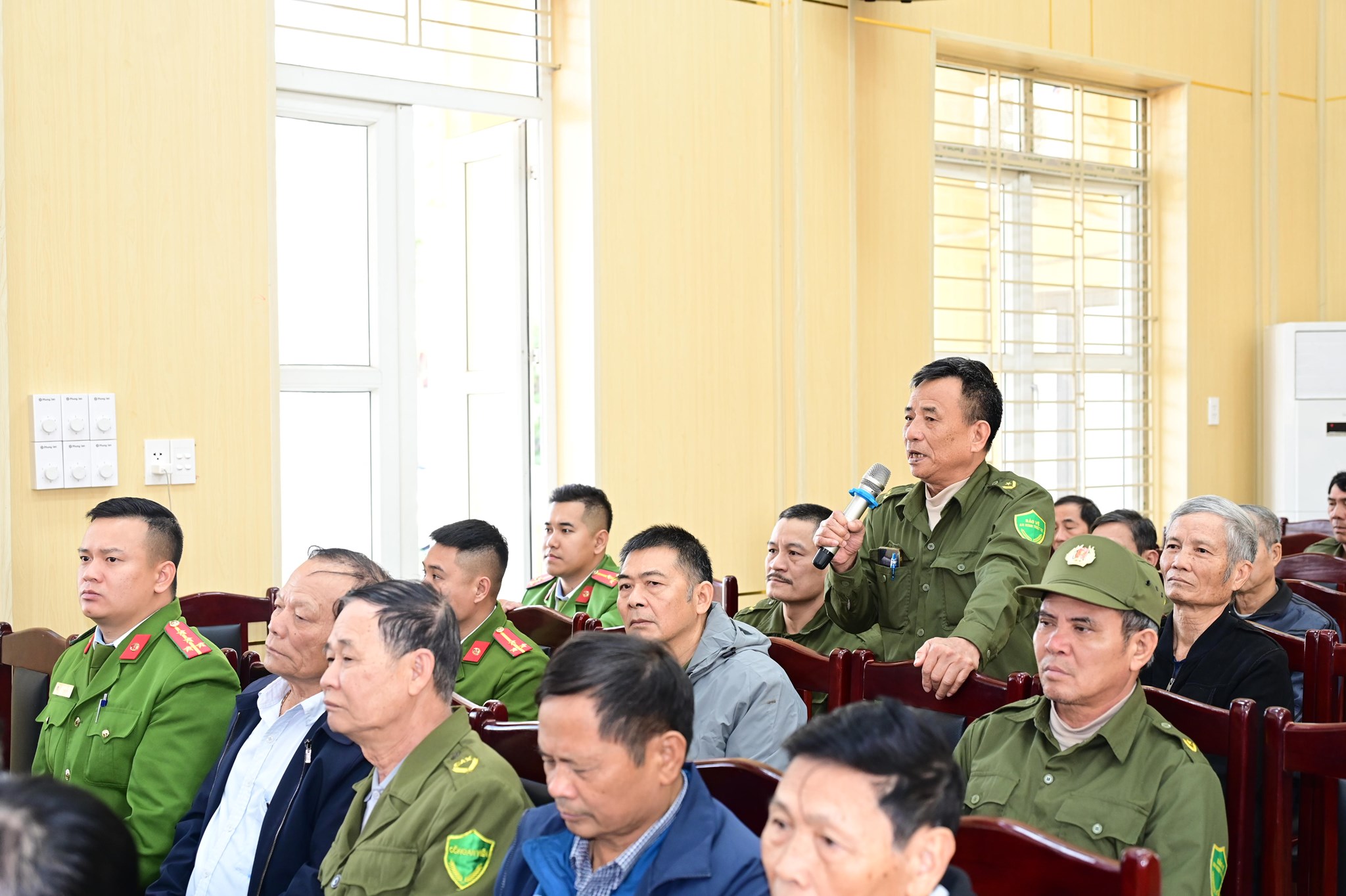 Đại diện lực lượng tham gia bảo vệ an ninh ở cơ sở và các tổ dân phố phát biểu hưởng ứng