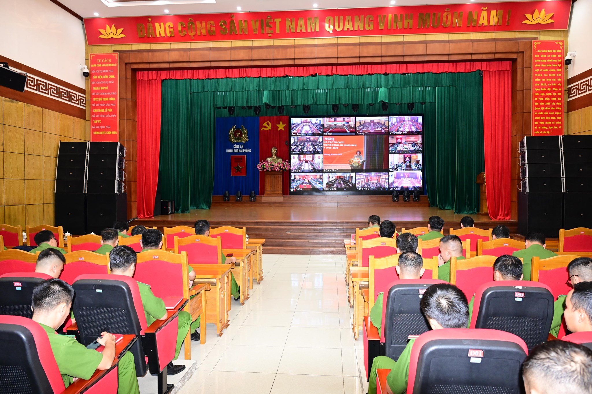 Chiều 16/9/2025, Bộ Công an tổ chức Hội nghị trực tuyến tập huấn công tác tổ chức Đại hội Đoàn các cấp trong CAND, nhiệm kỳ 2025 - 2030. Tham dự hội nghị tại điểm cầu CATP có các đồng chí: Thượng tá Bùi Huy Ngọc, Phó Trưởng phòng Công tác chính trị - CATP; Thiếu tá Bùi Ngọc Hùng, Trưởng Ban Thanh niên CATP cùng tập thể Ban Thanh niên CATP; Bí thư Đoàn Thanh niên các đơn vị cấp phòng trong CATP, Bí thư Đoàn Thanh niên Đồn Công an các Khu công nghiệp; Bí thư, Phó Bí thư Đoàn Công an xã, phường, đặc khu. Gần 300 đại biểu đã tham gia đầy đủ các nội dung tập huấn.