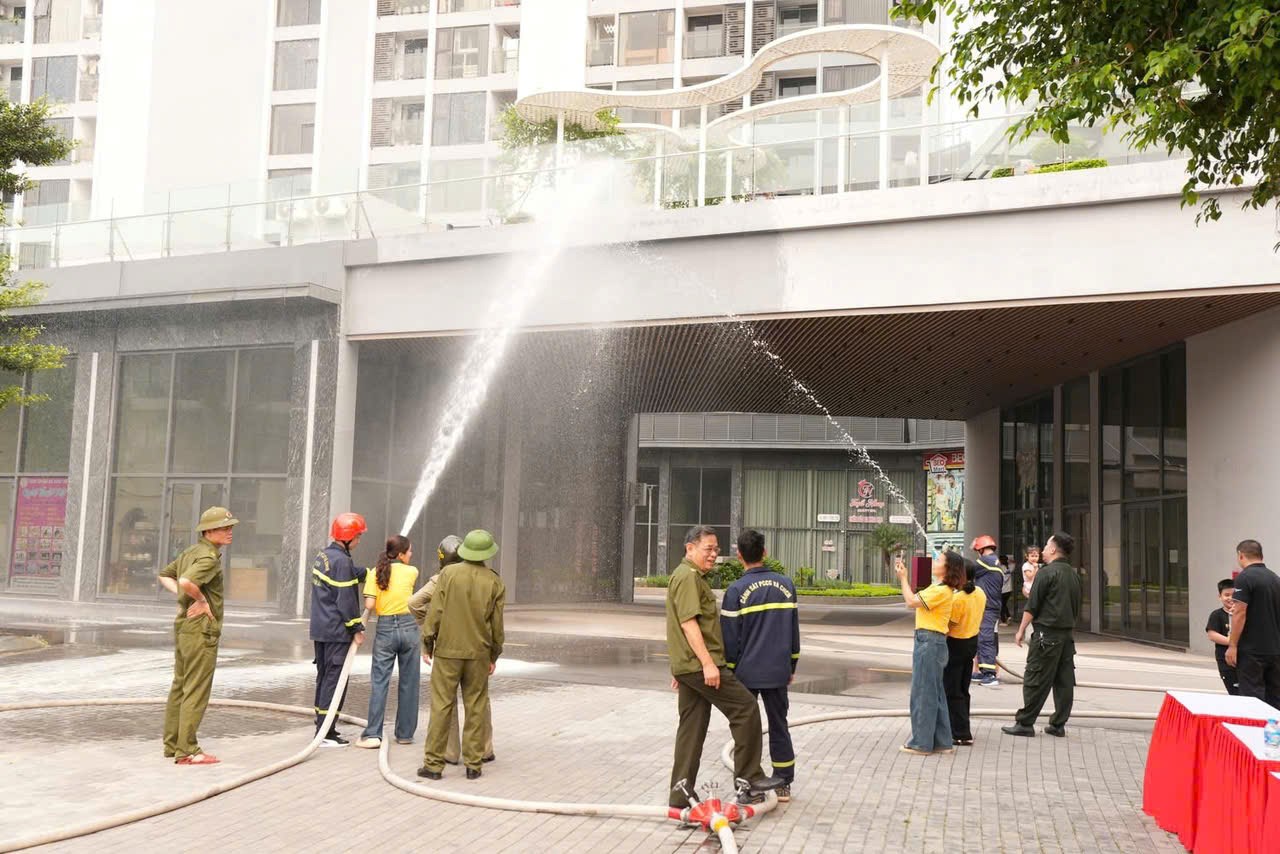 Đặc biệt, người dân đã trực tiếp tham gia thực hành các tình huống thực tế như: sử dụng bình chữa cháy xách tay khống chế đám cháy; trải nghiệm thoát hiểm từ nhà cao tầng bằng xe thang và dây cứu nạn; thực hành kỹ thuật phun nước dập tắt hỏa hoạn.
