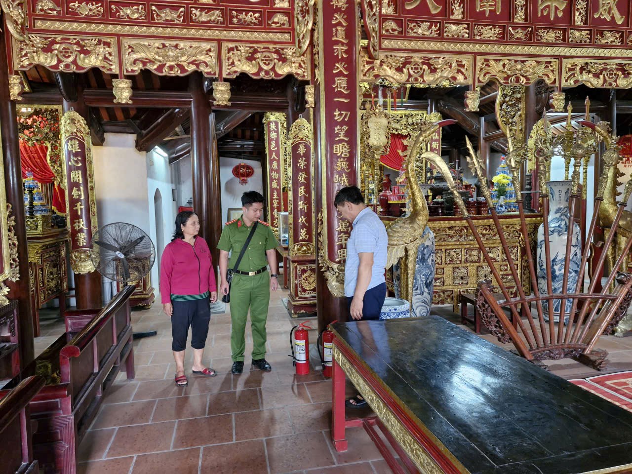 Lực lượng Công an xã đã tiến hành 04 lượt kiểm tra trực tiếp tại 04 cơ sở tôn giáo, tín ngưỡng. Nội dung kiểm tra tập trung vào việc chấp hành các quy định của pháp luật về PCCC; trọng tâm là các điều kiện an toàn trong sử dụng hệ thống điện; việc bố trí, sắp xếp khu vực thắp hương, hóa sớ đảm bảo khoảng cách ngăn cháy; kiểm tra tình trạng hoạt động của các phương tiện chữa cháy tại chỗ và khả năng vận hành, xử lý tình huống của lực lượng phụ trách tại cơ sở.