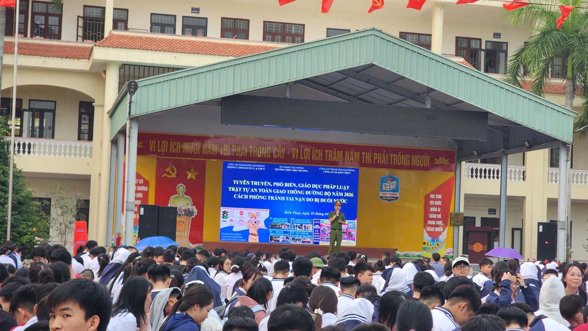 Chiều ngày 18/4/2026, Công an xã Kiến Thụy phối hợp cùng Đội Cảnh sát PCCC khu vực 6 (Phòng Cảnh sát PCCC & CNCH) và Trường THPT Thụy Hương tổ chức buổi tuyên truyền phổ biến pháp luật về trật tự an toàn giao thông (ATGT), kỹ năng phòng cháy chữa cháy (PCCC) và cứu nạn cứu hộ (CNCH).