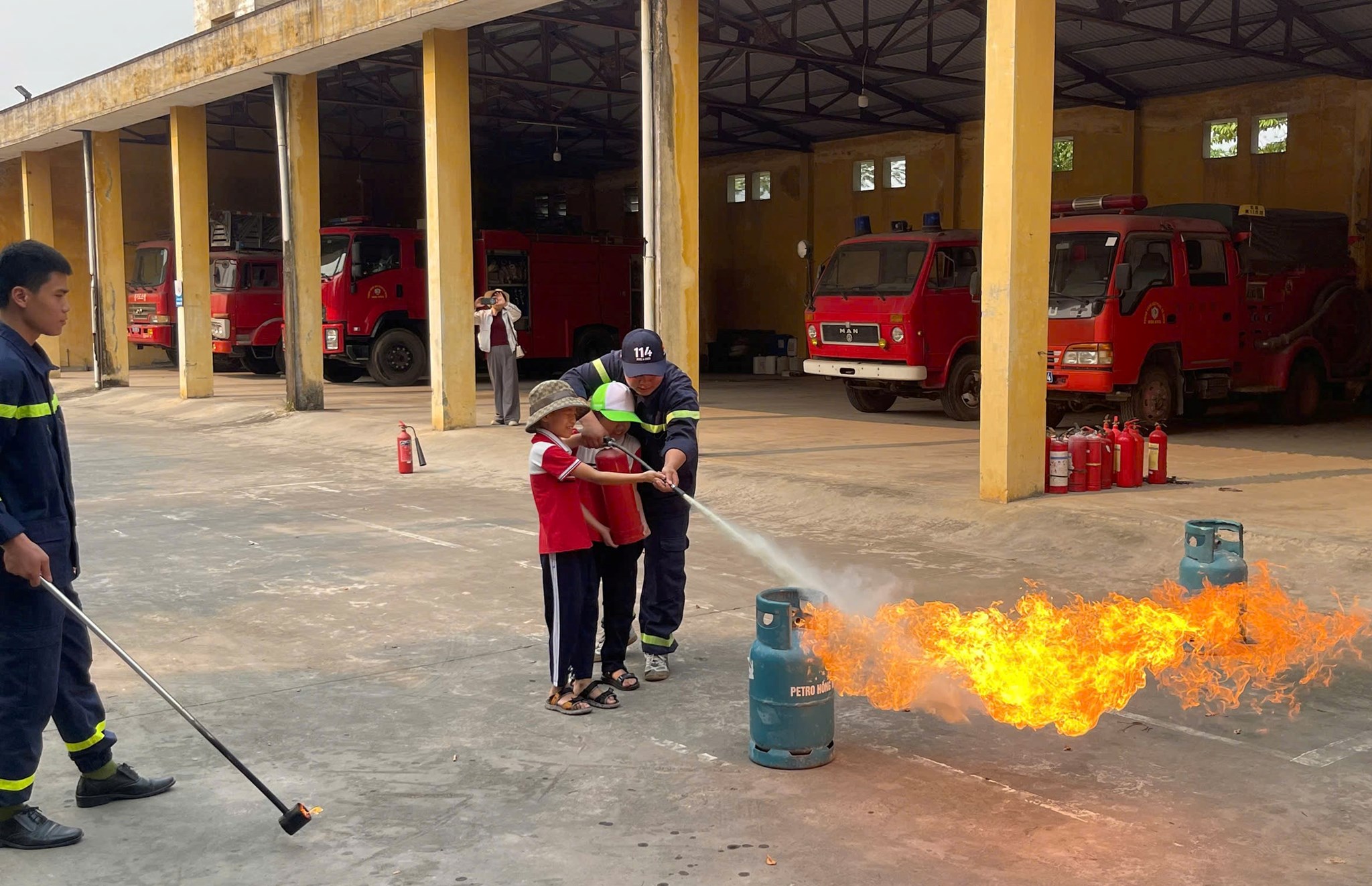 Điểm nhấn của hoạt động là phần thực hành trực tiếp, nơi các em được trải nghiệm thực tế các kỹ năng sinh tồn quan trọng như: Kỹ năng thoát nạn trong môi trường nhiều khói, không gian hạn chế; Trải nghiệm thoát nạn bằng xe thang chuyên dụng; Thực hành sử dụng bình chữa cháy xách tay để dập tắt đám cháy giả định từ rò rỉ khí gas; Sử dụng lăng vòi phun nước tiêu điểm và học kỹ thuật sơ cứu ban đầu cho người bị nạn.