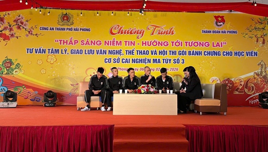 Ngày 6/2/2026, Công an thành phố (CATP) phối hợp Thành đoàn Hải Phòng tổ chức Chương trình “Thắp sáng niềm tin - Hướng tới tương lai” cho học viên Cơ sở cai nghiện ma túy số 3.