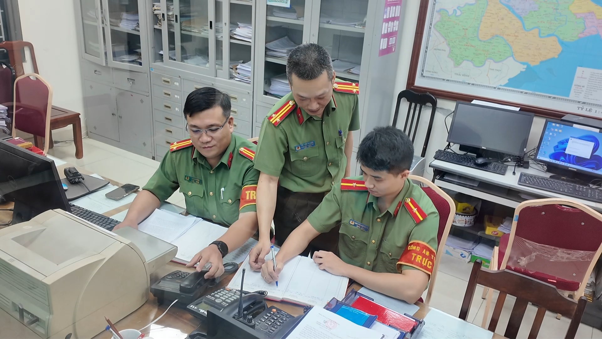 Thất bại trên chiến trường miền Nam, Mỹ leo thang đánh phá miền Bắc bằng cả không quân và hải quân, Văn phòng Công an Hải Phòng, Hải Dương đã tham mưu xây dựng kế hoạch sơ tán Nhân dân, phòng cháy, chữa cháy; tham mưu mở hội nghị bàn phương hướng đối phó với chiến tranh phá hoại, thành lập các trạm quan sát máy bay, các đội phục vụ an toàn giao thông, đội cứu thương, cứu sập hầm, đội Công an vũ trang bắn máy bay. Các bộ phận hậu cần, hồ sơ, thông tin liên lạc đã làm việc khẩn trương, đưa hồ sơ tài liệu đến nơi an toàn, đào hầm hố phòng không, nhanh chóng hoàn chỉnh đường dây điện thoại hữu tuyến, bảo đảm thông tin nhanh chóng, chính xác phục vụ chiến đấu; bộ phận văn thư dũng cảm hàng ngày vượt qua bom đạn, kịp thời chuyển công văn đến đơn vị chiến đấu. Trong tổ văn thư có đồng chí Triệu, trong tổ quan sát máy bay có đồng chí Nguyễn Hữu Cầu, hai đồng chí vinh dự được tặng thưởng Huy hiệu Bác Hồ.